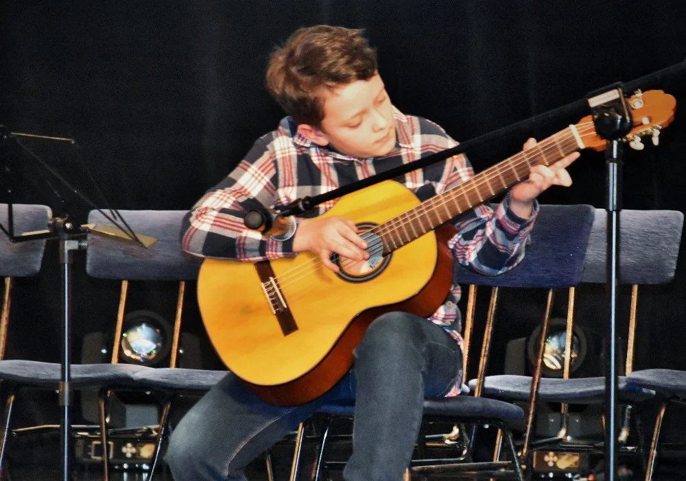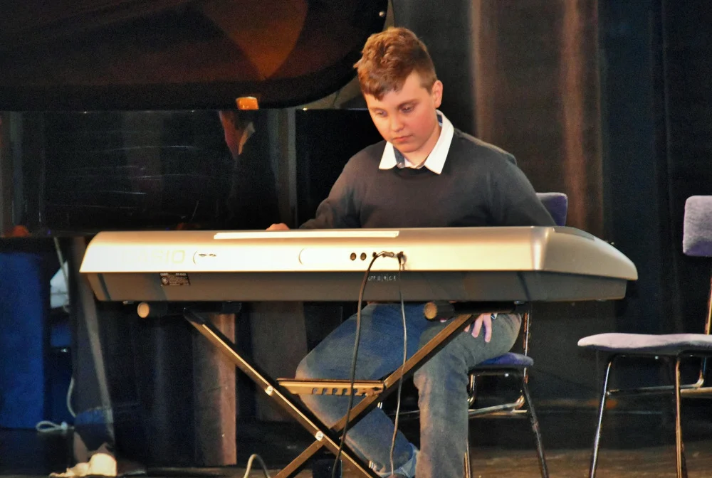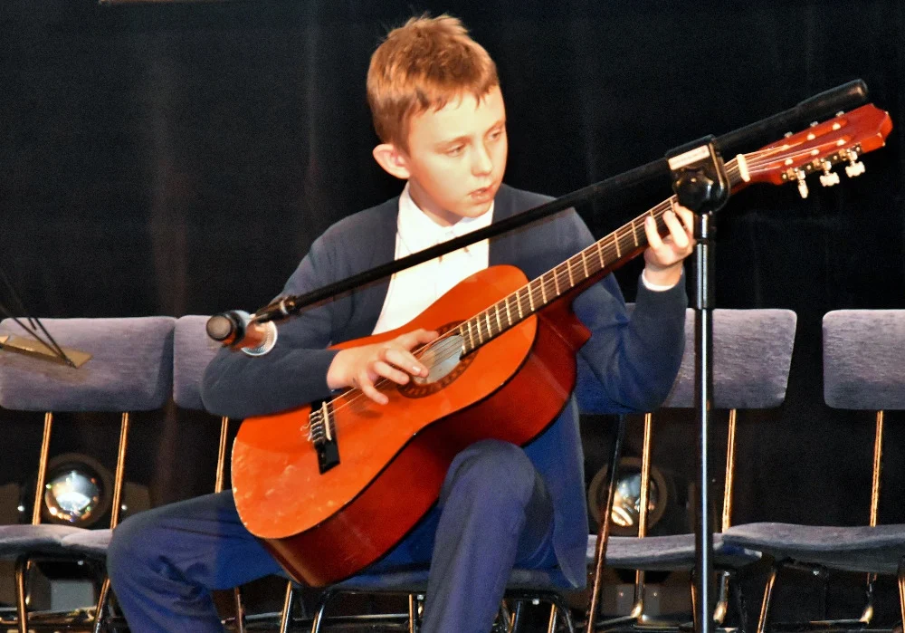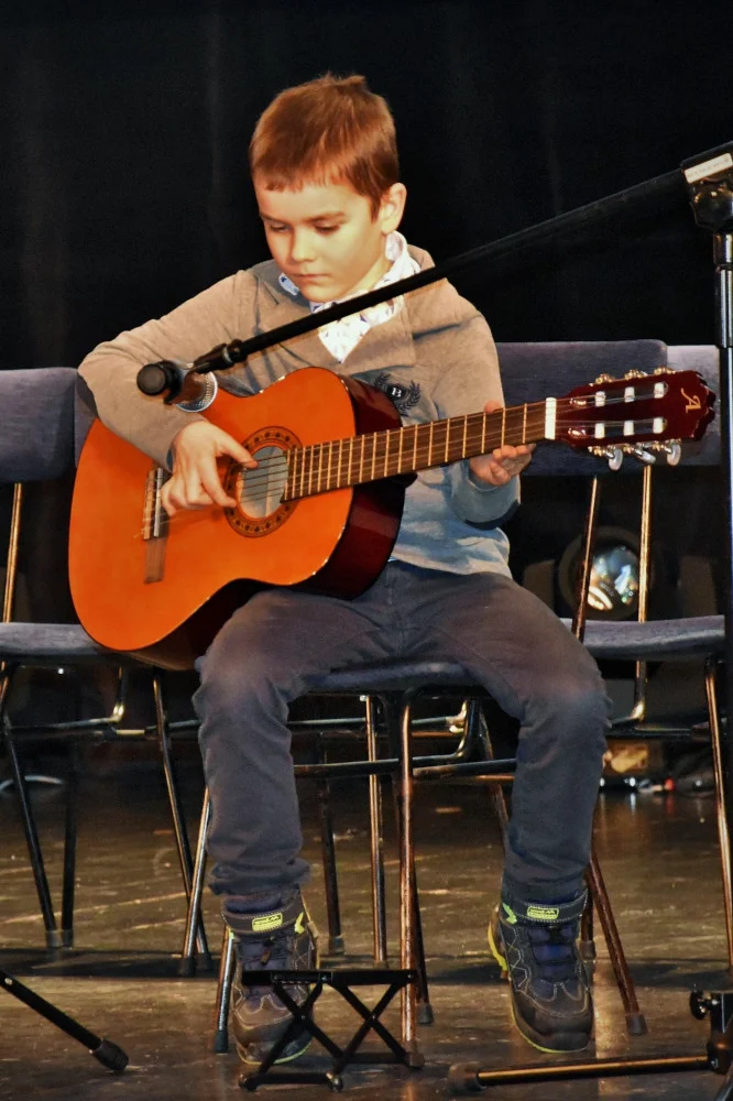 Przed wypełnioną do ostatniego miejsca widownią zaprezentowali się młodzi muzycy grający na gitarze (nauczyciel: Barbara Kupczak), ukulele (nauczyciel: Jadwiga Horyń), keyboardzie (nauczyciel: Szymon Kopiec) i pianinie (nauczyciel: Radosław Tarczoń).