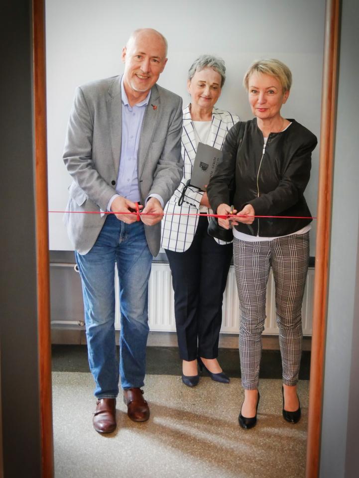 Podpisanie umowy stało się też okazją do uroczystego otwarcia przeprojektowanych, wyremontowanych i na nowo wyposażonych pomieszczeń biurowych w ZST Mikołów. Uroczystego przecięcia wstęgi dokonały władze Powiatu Mikołowskiego na czele ze starostą Mirosławem Dużym. Prace remontowe oraz wyposażenie pomieszczeń zostały sfinansowane ze środków Powiatu Mikołowskiego.