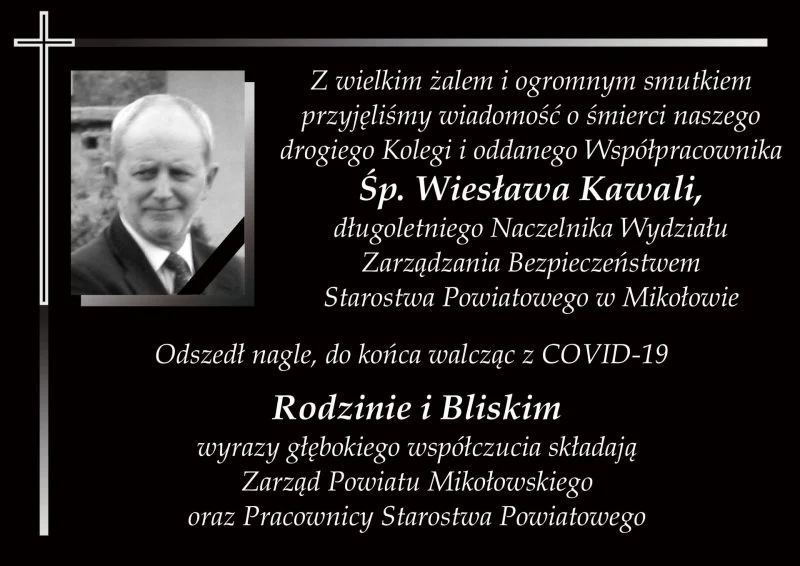 Starostwo Powiatowe w Mikołowie złożyło kondolencje dla rodziny Wiesława Kawala – długoletniego Naczelnika Wydziału Zarządzania Bezpieczeństwem Starostwa Powiatowego w Mikołowie.