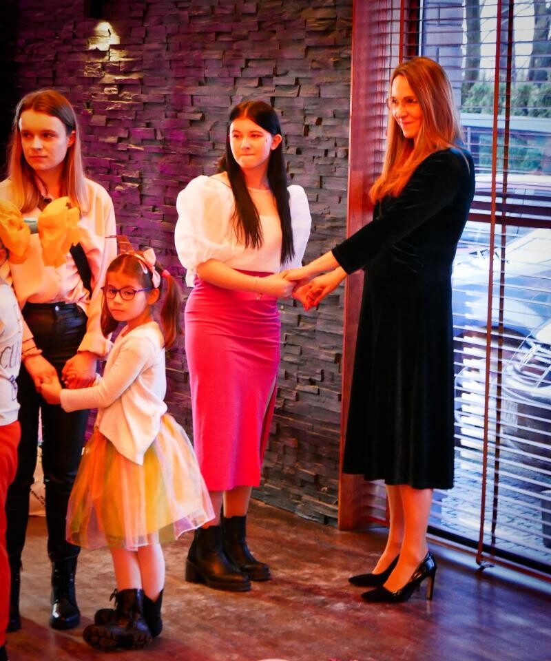 Wszystkim darczyńcom, wolontariuszom i dobrodziejom Domu Dziecka dziękowała wraz z wychowankami Agnieszka Kuchna, na co dzień dyrektor tej placówki. Były także popisy twórcze wychowanków, gry oraz bajeczna zabawa gości z dzieciakami na parkiecie, którą dziarsko poprowadził wszechstronny wodzirej Marek Ajchsztet.