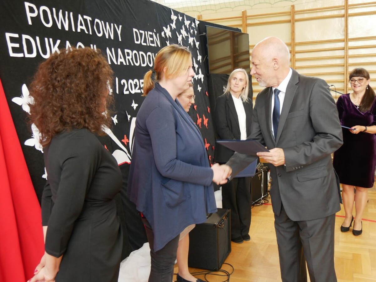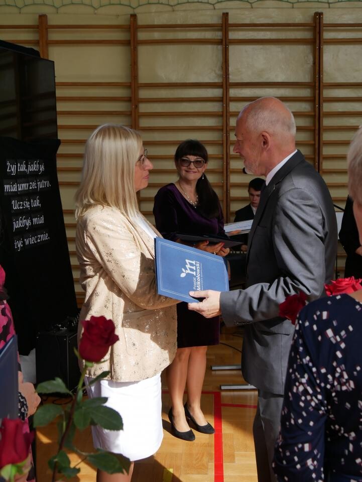 Wręczono również listy gratulacyjne z okazji awansów na stopień nauczyciela dyplomowanego oraz wyróżnienia dla nauczycieli, którzy przygotowywali uczniów do egzaminów zawodowych. Wyróżnieni zostali m.in. Piotr Majdzik, Bernadeta Ignacy oraz Agnieszka Ambrożejczyk-Langier.