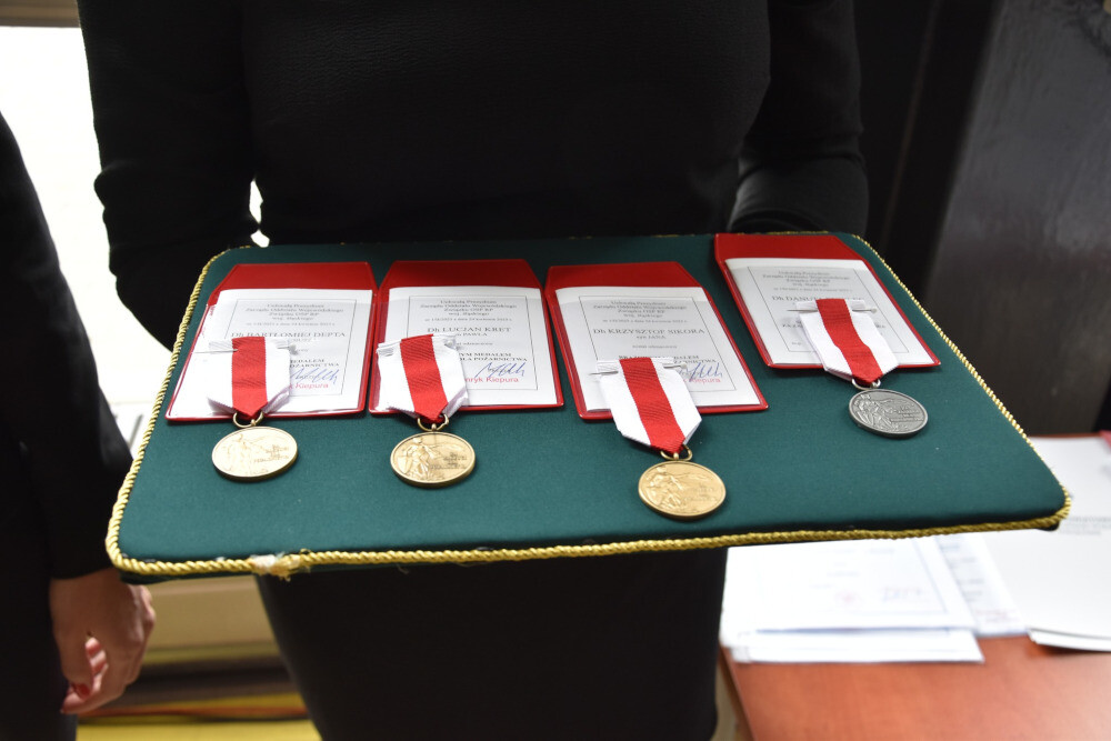 Brązowym Medalem za Zasługi dla Pożarnictwa wyróżniono Bartłomieja Deptę naczelnika Wydziału Zarządzania Bezpieczeństwem starostwa, asp. Krzysztofa Sikorę (KP PSP) i nadkom. Lucjana Kreta (Komenda Powiatowa Policji w Mikołowie), Srebrny Medal za Zasługi dla Pożarnictwa trafił do Danuty Bywalec – skarbnik powiatu.