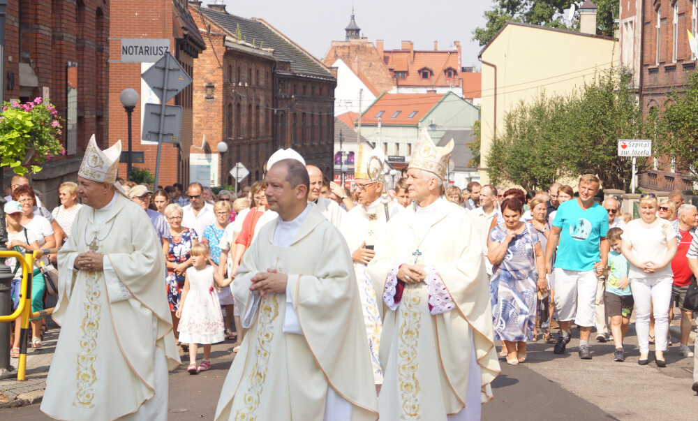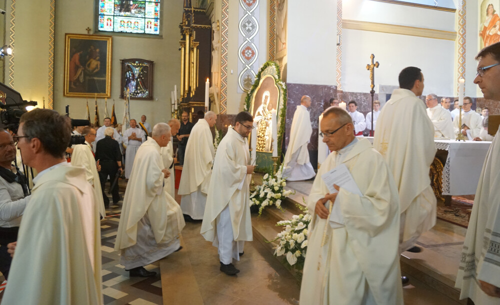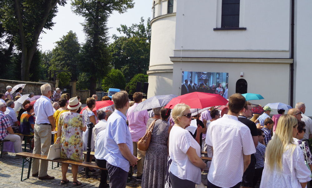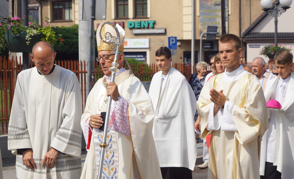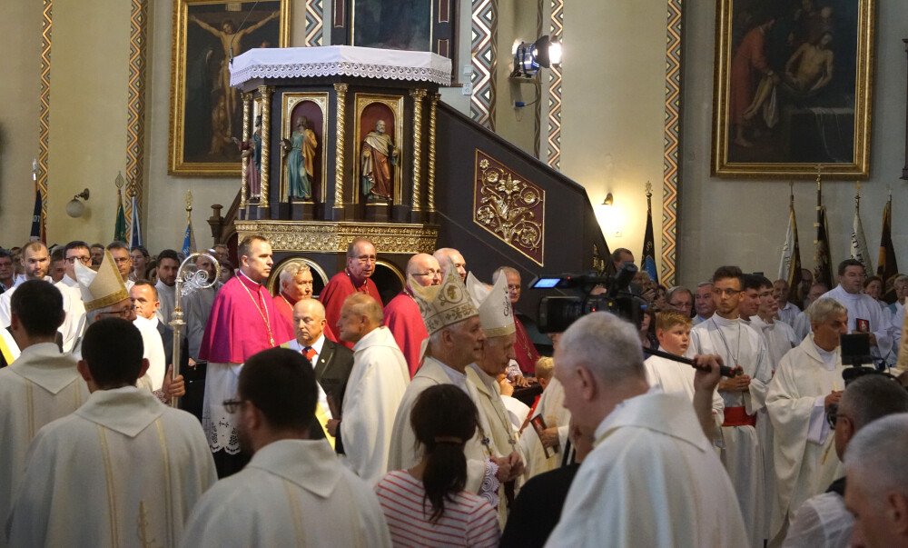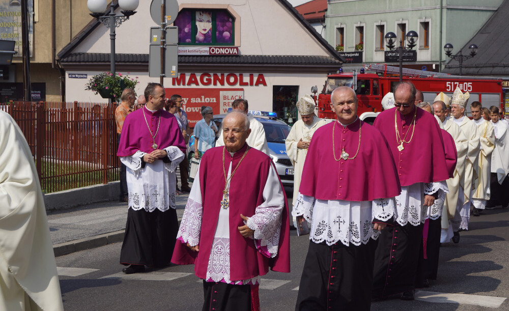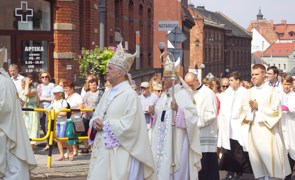 Uroczystości rozpoczęła procesja od parafii Matki Boskiej Śnieżnej wprost do Bazyliki św. Wojciecha. Mszę Świętą koncelebrowali metropolita katowicki, abp. Wiktor Skworc, abp. senior Damian Zimoń, bp. Adam Wodarczyk, bp. nominat Grzegorz Olszowski, bp. Marek Szkudło i ks. proboszcz Mirosław Godziek. Bazylikę do ostatniego miejsca wypełnili mikołowianie, lokalne władze samorządowe, zarówno przedstawiciele miasta z burmistrzem Mikołowa, Stanisławem Piechulą na czele, a także przedstawiciele starostwa, radni powiatowi i posłowie z okręgu, m.in. posłanka z ramienia PiS, Izabela Kloc. Zobaczyliśmy poczty sztandarowe szkół, służb mundurowych, zakładów pracy i organizacji kościelnych. W nabożeństwie udział wziął również proboszcz parafii ewangelicko-augsburskiej św. Jana w Mikołowie, ks. Kornel Undas.