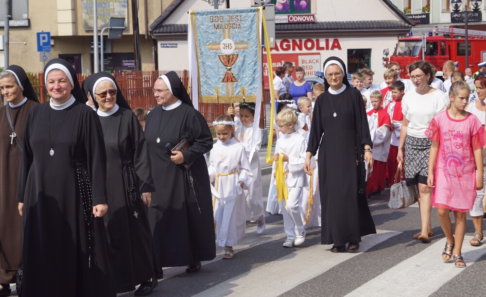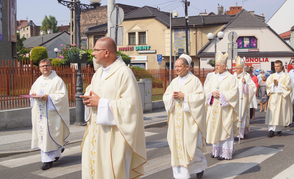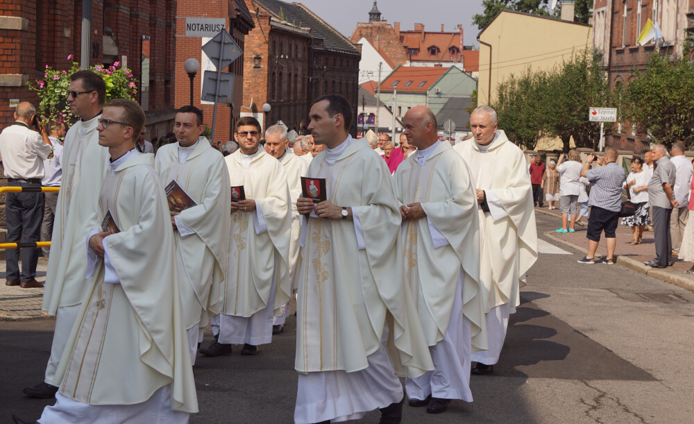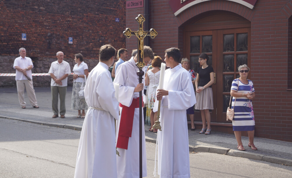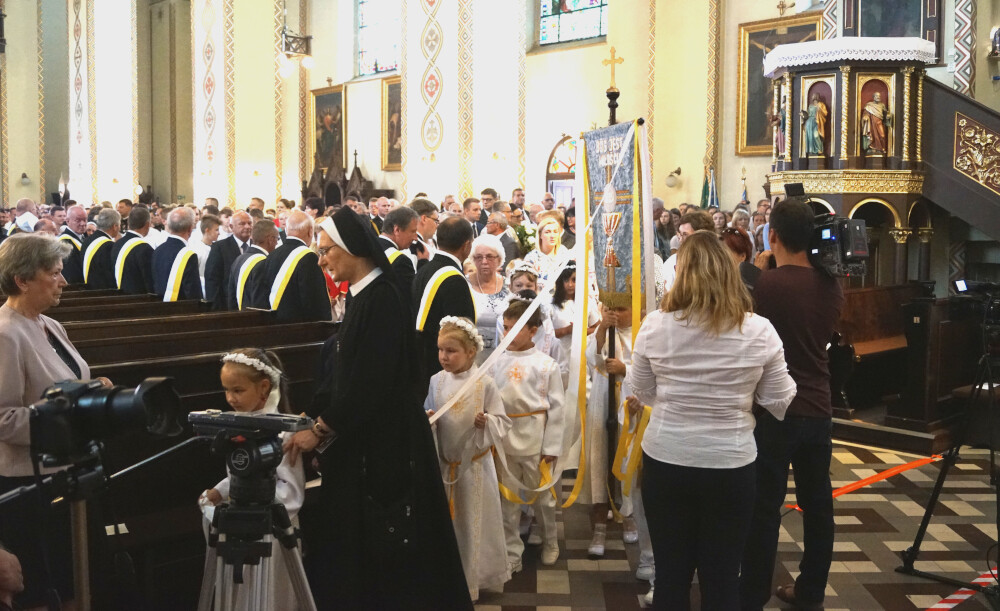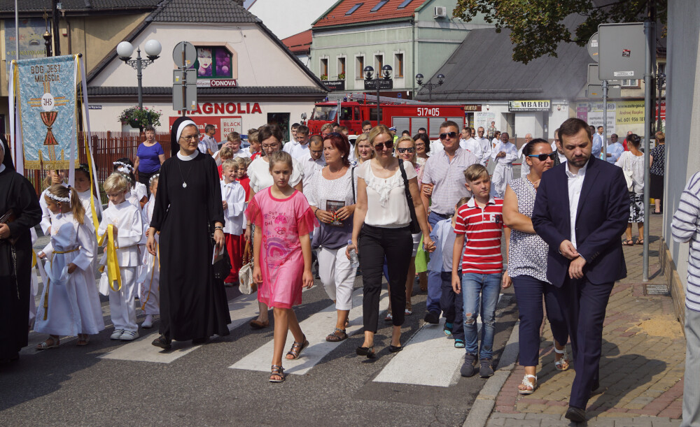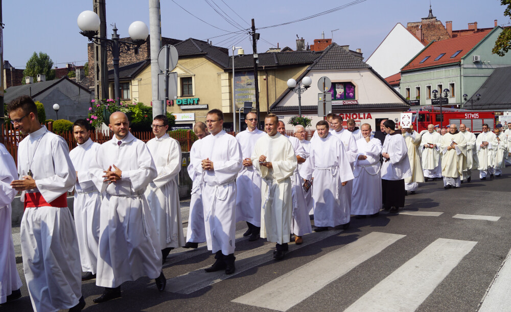 Uroczystości rozpoczęła procesja od parafii Matki Boskiej Śnieżnej wprost do Bazyliki św. Wojciecha. Mszę Świętą koncelebrowali metropolita katowicki, abp. Wiktor Skworc, abp. senior Damian Zimoń, bp. Adam Wodarczyk, bp. nominat Grzegorz Olszowski, bp. Marek Szkudło i ks. proboszcz Mirosław Godziek. Bazylikę do ostatniego miejsca wypełnili mikołowianie, lokalne władze samorządowe, zarówno przedstawiciele miasta z burmistrzem Mikołowa, Stanisławem Piechulą na czele, a także przedstawiciele starostwa, radni powiatowi i posłowie z okręgu, m.in. posłanka z ramienia PiS, Izabela Kloc. Zobaczyliśmy poczty sztandarowe szkół, służb mundurowych, zakładów pracy i organizacji kościelnych. W nabożeństwie udział wziął również proboszcz parafii ewangelicko-augsburskiej św. Jana w Mikołowie, ks. Kornel Undas.