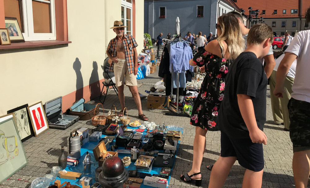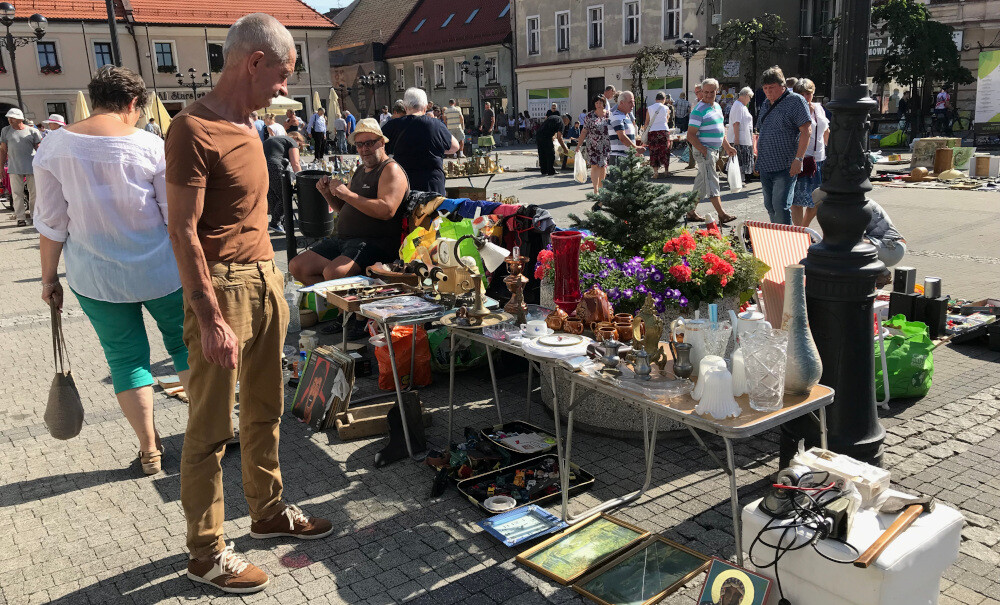 Na płycie rynku pojawiło się wielu wystawców. Mogliśmy podziwiać wyjątkową porcelanę, obrazy, stare zegary, zegarki i aparaty fotograficzne, biżuterię, galanterię skórzaną, maszyny do pisania i do szycia, mosiężne i miedziane przedmioty, sprzęt grający i nieodzowne – książki, militaria i numizmatykę. Furorę wśród odwiedzających zrobił natomiast motocykl z bocznym wózkiem.
