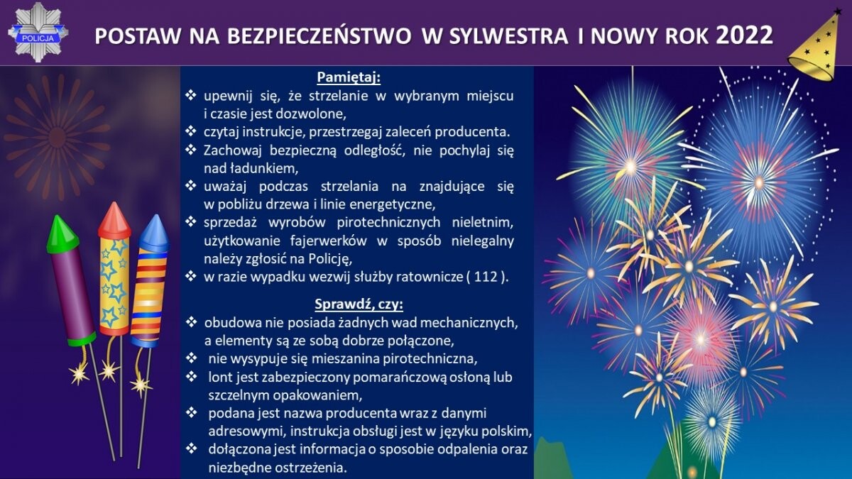 Zadbajmy wspólnie o to, aby koniec odchodzącego roku i początek Nowego Roku był dla nas wszystkich spokojny i bezpieczny.