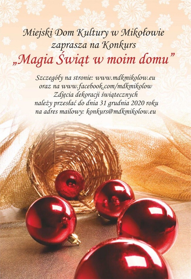 Do 31 grudnia prześlijcie zdjęcia (maksymalnie 5) swoich dekoracji, a MDK Mikołów zaprezentuje najciekawsze prace i wyłoni zwycięzców! Do udziału w konkursie zaprasza dzieci, młodzież i dorosłych. Do zdjęć możecie dołączyć ciekawy opis, koniecznie prześlijcie też Kartę informacyjną, którą wraz z regulaminem znajdziecie poniżej!
