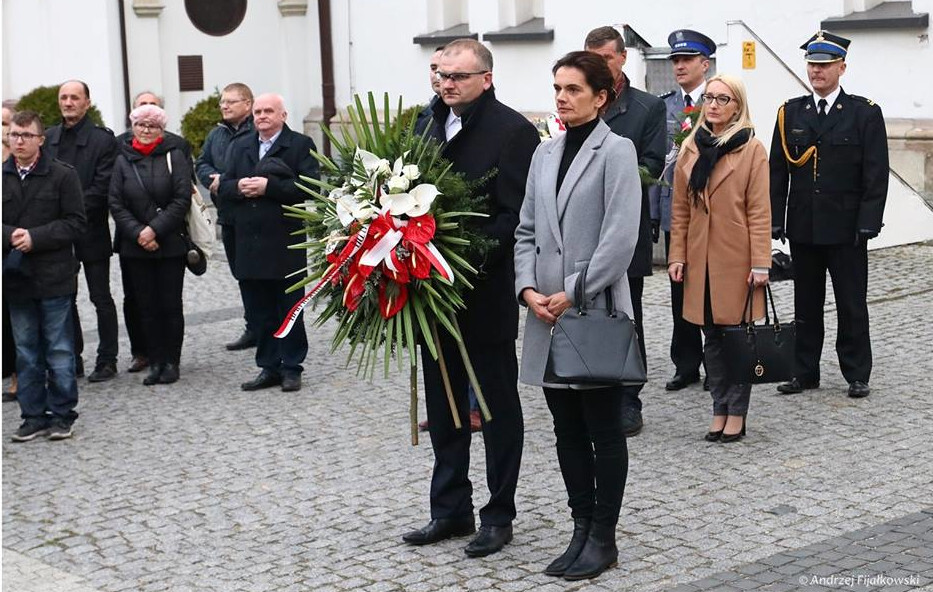 Kwiaty złożyli również działacze Prawa i Sprawiedliwości na czele z posłanką RP, Izabelą Kloc, a krótką modlitwę w intencji ofiar i poległych zmówił z obecnymi proboszcz parafii, ks. Mirosław Godziek.