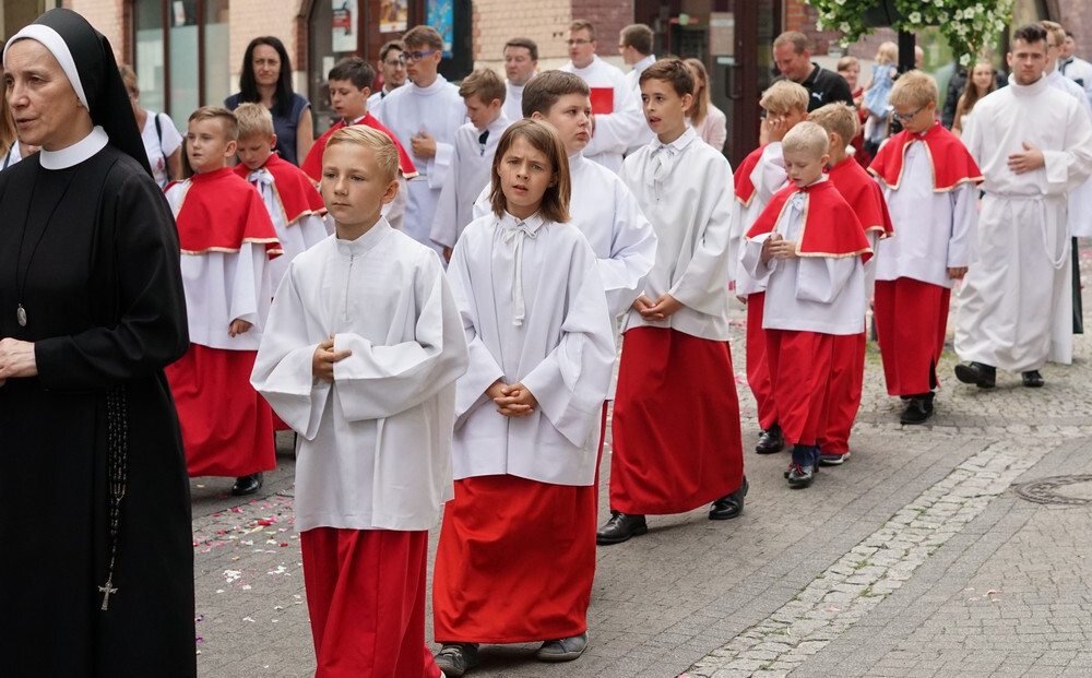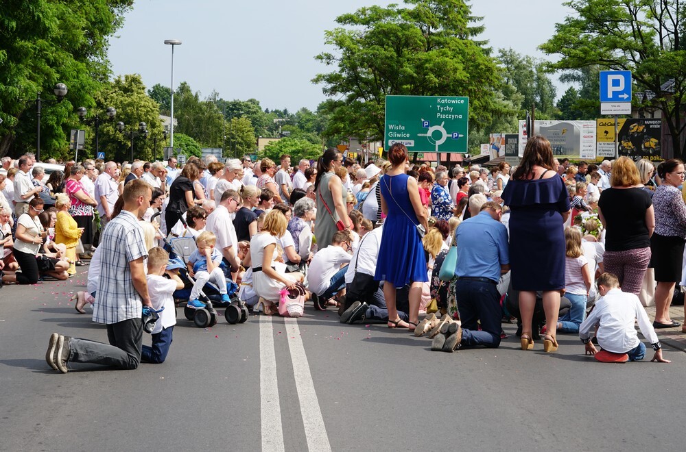 Tuż po porannej Mszy Św. spod Bazyliki św. Wojciecha ruszyła tradycyjna procesja. Wzięły w niej udział dziesiątki mikołowian.