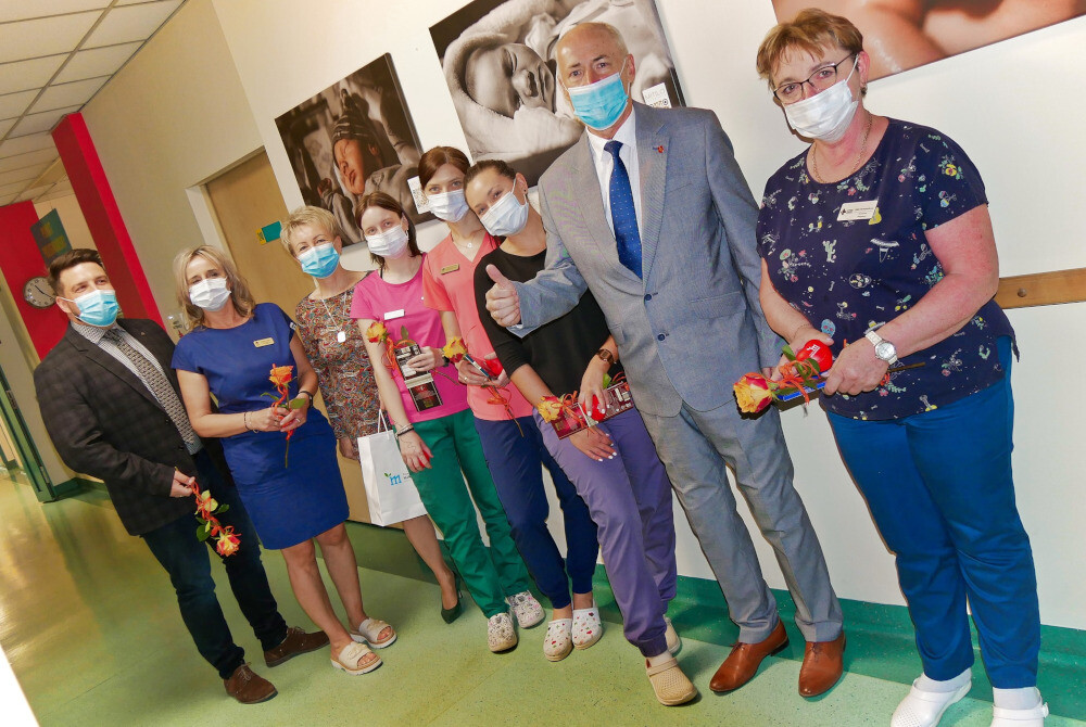 Z tej okazji położnym pracującym w Centrum Zdrowia w Mikołowie serdeczne życzenia i podziękowania za codzienną pracę oraz zaangażowanie w opiekę nad pacjentkami i ich maluszkami złożyli starosta mikołowski Mirosław Duży, członkini Zarządu Powiatu Grażyna Nazar oraz prezes Centrum Zdrowia Mateusz Niewdana.