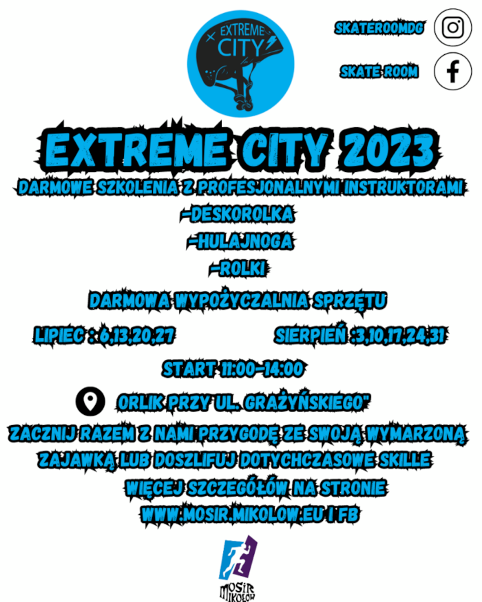 W ramach akcji „Lato dla aktywnych” MOSiR Mikołów zaprosił do Mikołowa licencjonowanych instruktorów z Extreme City, którzy przeprowadzą chętnych przez pierwsze kroki lub pozwolą doszlifować dotychczasowe umiejętności.