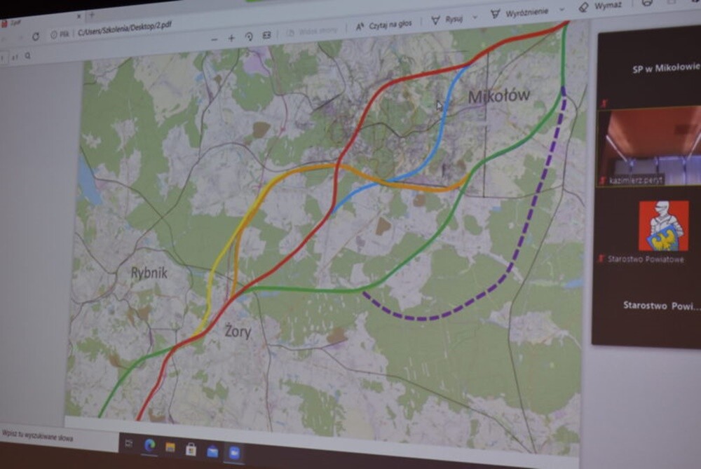 W trakcie zdalnego spotkania przedstawiono wszystkie dotychczasowe propozycje przebiegu projektowanej trasy kolejowej proponowane przez spółkę CPK. Pomimo naniesionych przez projektantów korekt, żaden z tych przebiegów nie jest do zaakceptowania, zarówno przez mieszkańców naszego powiatu jak i samorządowców. Dlatego też podczas wideokonferencji wójt Wyr Barbara Prasoł w imieniu wszystkich samorządowców naszego powiatu przedstawiła kolejny alternatywny przebieg. Zgodnie z tą propozycją trasa zostałaby poprowadzona przez tereny lasów pszczyńskich i kobiórskich.