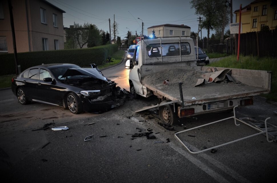 Gdy kierujący zorientował się, że ma do czynienia z policjantami, przyspieszył i rozpoczął ucieczkę. Podczas tej brawurowej jazdy dopuścił się jeszcze kilku innych wykroczeń, powodując zagrożenie bezpieczeństwa w ruchu, między innymi idących chodnikiem pieszych. Przy skrzyżowaniu z ulicą Poprzeczną, bmw wjechało na przeciwległy pas ruchu i uderzyło w dostawczego fiata.