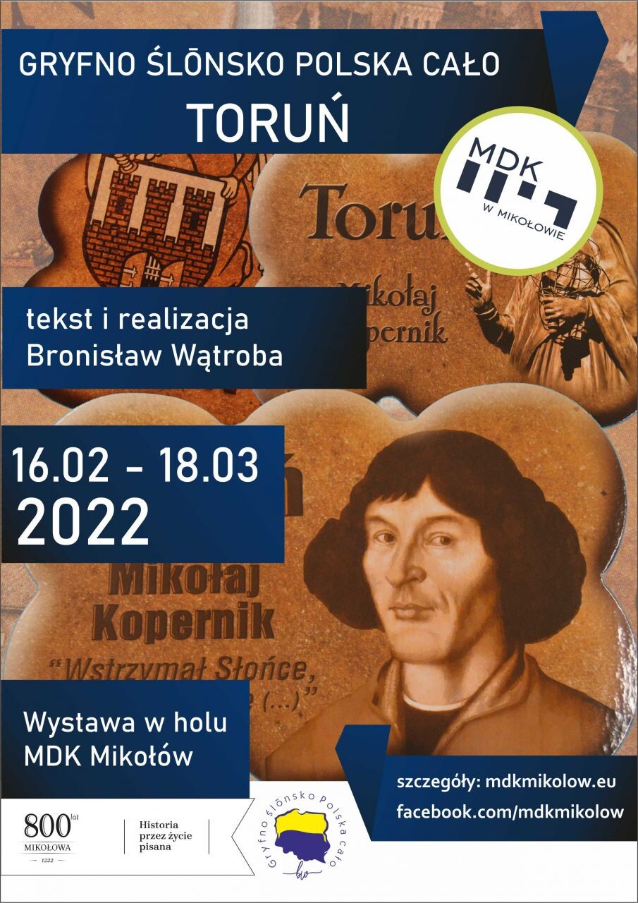 Od 16 lutego do 18 marca w holu MDK można obejrzeć kolejną wystawę Bronisława Wątroby. Tym razem jest ona częścią cyklu "Gryfno ślonsko Polska cało" i prezentuje Toruń na widokówkach z tekstem o historii miasta. Oczywiście - do czego przyzwyczaiły nas poprzednie wystawy autora - po śląsku i do rymu.