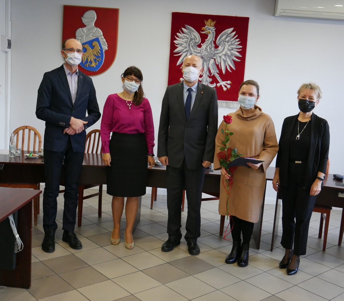 Starosta Mikołowski z okazji awansu złożył Annie Tomaszewskiej gratulacje, życzenia i podziękowania za wieloletnią, pełną zaangażowania pracę. W spotkaniu uczestniczyli również: Iwona Smorz, naczelnik Wydziału Edukacji, Kultury i Sportu oraz Tadeusz Śliwa, dyrektor Zespołu Szkół nr 2 Specjalnych im. M. Grzegorzewskiej w Mikołowie.