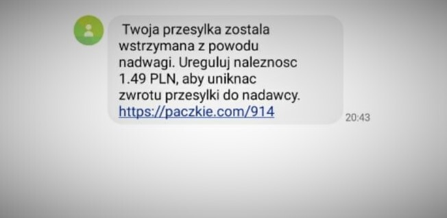 "Twoja przesyłak przekracza dopuszczalny limit masy, prosimy o dodatkową opłatę w wysokości 1,37 zł lub zamówienie zostanie zwrócone do nadawcy"... Takiej treści wiadomość wraz z linkiem przekierowującym na stronę banku otrzymał w piątek 32-letni mieszkaniec Łazisk Górnych. Niestety - po wykonaniu transakcji okazało się, że stracił aż 10 tysięcy złotych.