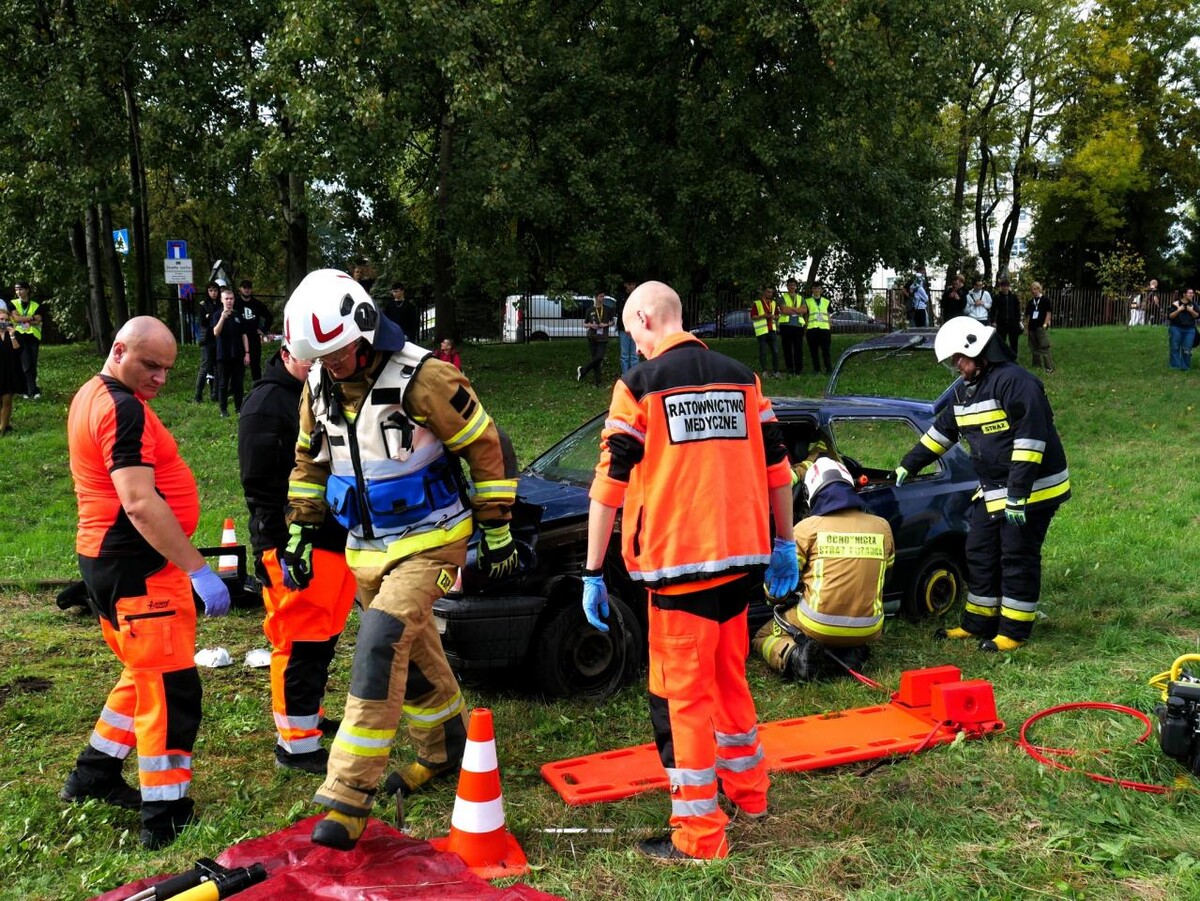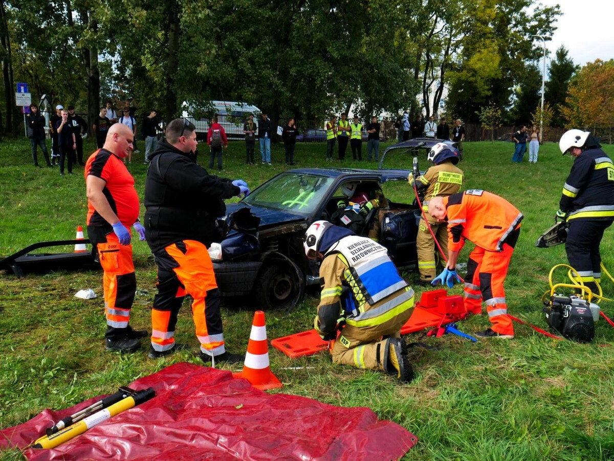 Podczas pikniku nie zabrakło atrakcji dla miłośników motoryzacji. Symulator dachowania przyciągnął spore tłumy, a długie kolejki chętnych świadczyły o ogromnym zainteresowaniu. Wiele emocji wzbudził także pokaz umiejętności strażaków z OSP Mokre, którzy zaprezentowali, jak profesjonalnie wydobywa się osoby zakleszczone we wraku samochodu.