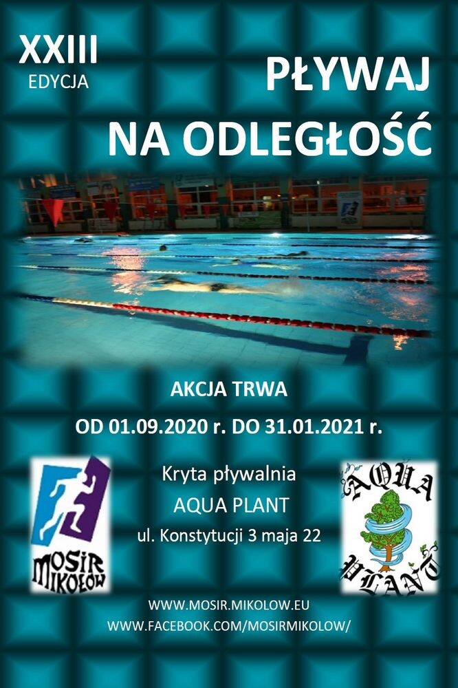 Miejski Ośrodek Sportu i Rekreacji w Mikołowie zaprasza wszystkich miłośników pływania do wzięcia udziału w XXIII edycji akcji “Pływaj na odległość”.