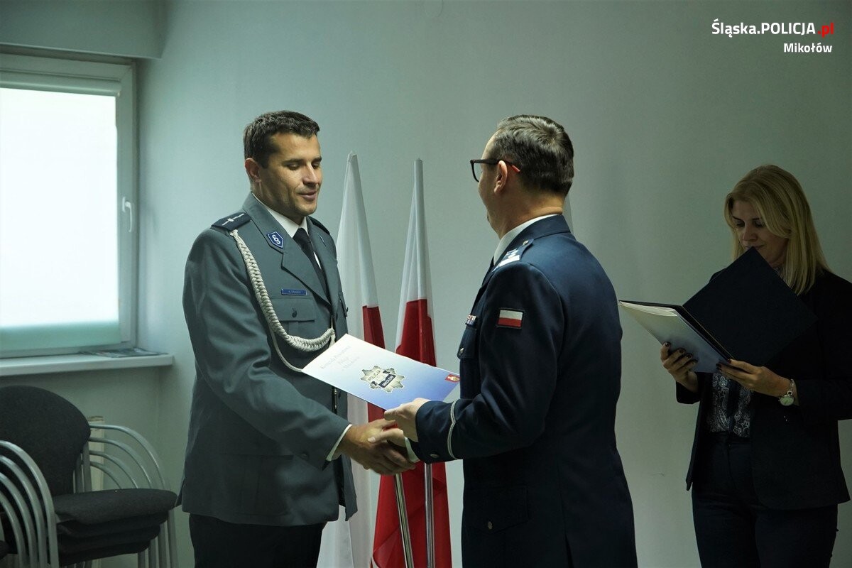 W Komendzie Powiatowej Policji w Mikołowie świętowano nie tylko Dzień Niepodległości. Listopadowe uroczystości stały się także okazją do awansów policjantów na wyższe stopnie służbowe oraz podziękowania pracownikom służby cywilnej za codzienny wkład i współtworzenie pozytywnej atmosfery pracy.