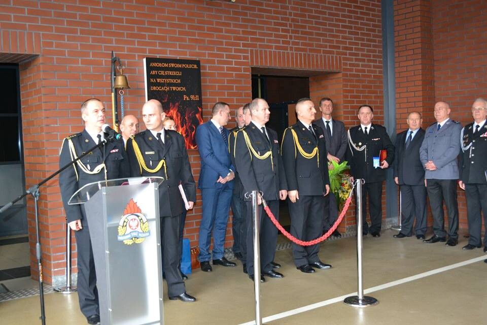 Na początku dowódca uroczystości mł. kpt. Jakub Gendarz złożył meldunek Śląskiemu Komendantowi Wojewódzkiemu Państwowej Straży Pożarnej brygadierowi Jackowi Kleszczewskiemu. Potem nastąpił akt odwołania z powodu przejścia na emeryturę dotychczasowego komendanta starszego brygadiera Dariusza Witkowicza. Zastąpił go młodszy brygadier Damian Krawczyk.