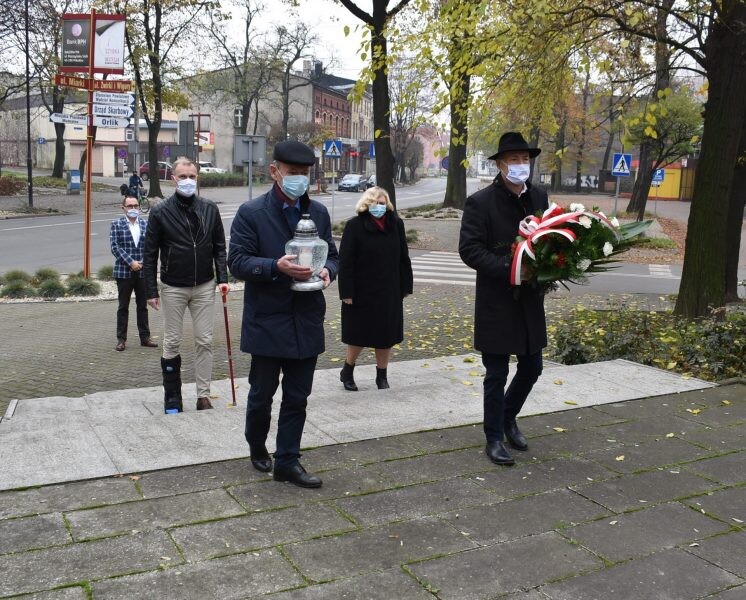 Kilka minut później kwiaty i znicz złożyli radni powiatowi: Łukasz Osmalak wraz z synami, a także Karol Szyszka oraz Michał Kopański. Ograniczenia związane z pandemią nie pozwoliły na udział większej liczby przedstawicieli władz powiatu i radnych Powiatu Mikołowskiego.