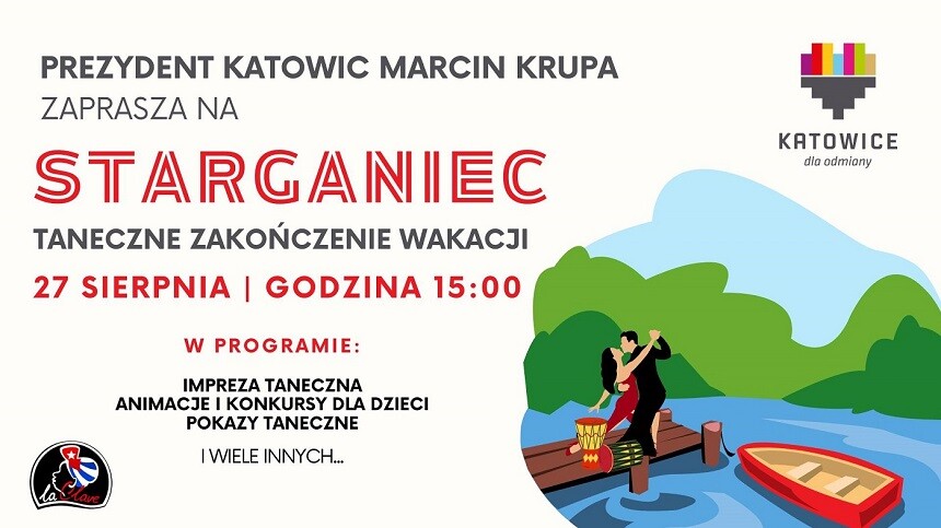 Miasto Katowice oraz prezydent Marcin Krupa serdecznie zapraszają mieszkańców i turystów na wyjątkowe taneczne pożegnanie wakacji, które odbędzie się na zrewitalizowanym terenie Stargańca! Wydarzenie, będące w pełni współorganizowane przez Szkołę Tańca La Clave Katowice, obiecuje niezapomniane przeżycia w atmosferze tańca i muzyki.