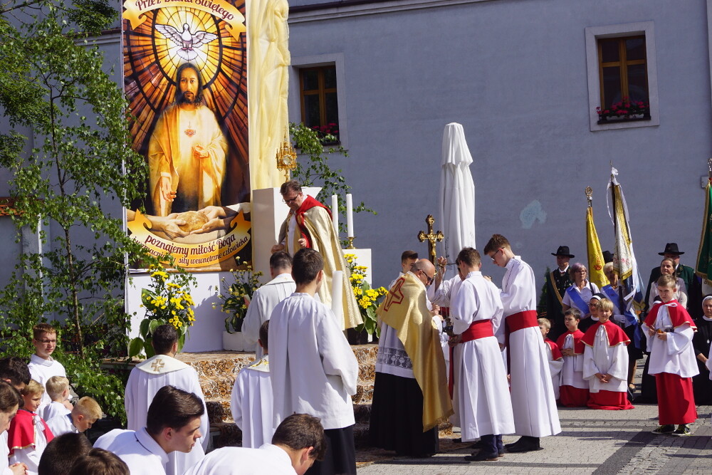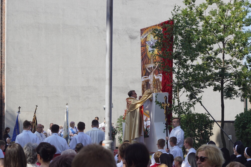 Procesja teoforyczna przeszła ulicami: Kardynała Stefana Wyszyńskiego, Krakowską do Rynku, Jana Pawła II do Placu Karpeckiego, następnie do ronda przy ul. Świętego Wojciecha, ul. Świętego Wojciecha do starego kościoła i ul. Okrzei do Bazyliki św. Wojciecha. W uroczystościach, oprócz parafian i wielu mikołowian, wzięły udział Siostry Boromeuszki, grupy parafialne, poczty sztandarowe, samorządowcy, organizacje pozarządowe, górnicy, służby mundurowe, harcerze, a przede wszystkim dzieci komunijne, młodzież, szczególnie ta, która w tym roku przyjęła sakrament bierzmowania.