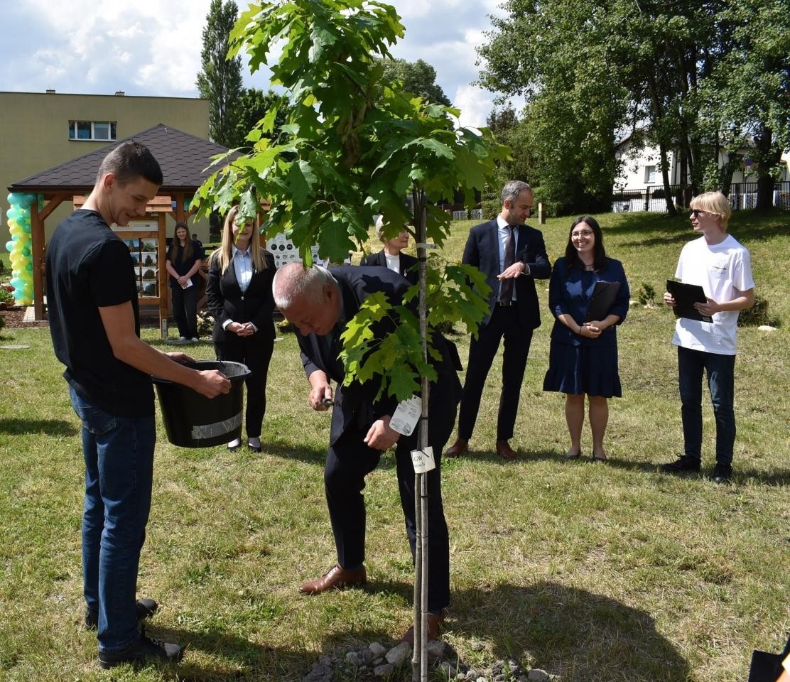 Wicedyrektor ZST, Róża Włodarz, podkreśliła, że projekt powstał dzięki pomysłowi Aleksandry Niczyporuk, byłej dyrektor Elżbiety Jabłońskiej oraz pracy uczniów i nauczycieli, którzy przygotowali teren, zamontowali wiatę, tablice edukacyjne oraz wykonali nasadzenia. Podczas otwarcia obecni byli m.in. poseł Łukasz Osmalak, wicewojewoda Michał Kopański, wiceprezes WFOŚiGW Iwona Gejdel-Targosz, wicestarosta Jarosław Sworzeń oraz przedstawiciele samorządu, nauczycieli, uczniów i sponsorów. Symbolicznym elementem uroczystości było przecięcie wstęgi i zasadzenie dębu, co nazwano wejściem w drugie stulecie istnienia szkoły.