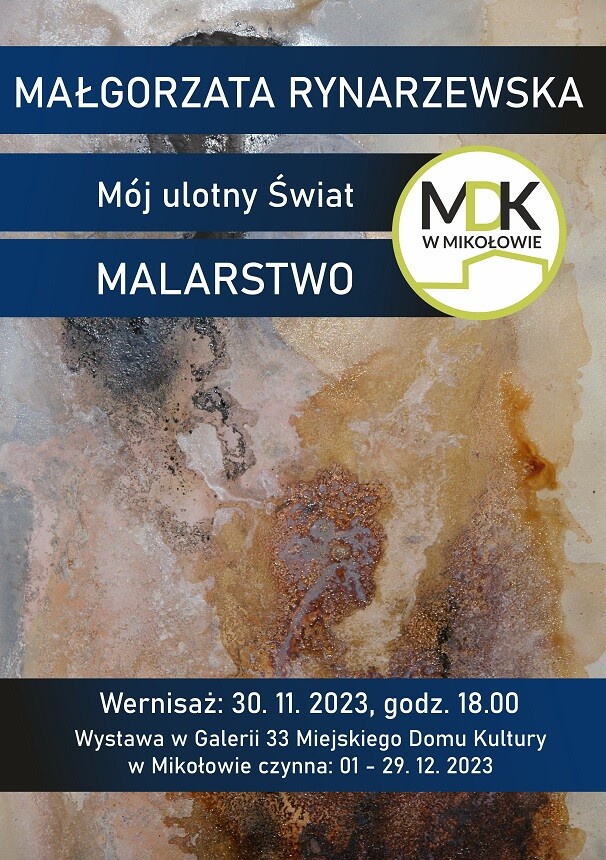 30 listopada Miejski Dom Kultury w Mikołowie zaprasza na wernisaż wystawy "Mój ulotny świat" Małgorzaty Rynarzewskiej. Wystawa w Galerii 33 będzie dostępna do 29 grudnia.