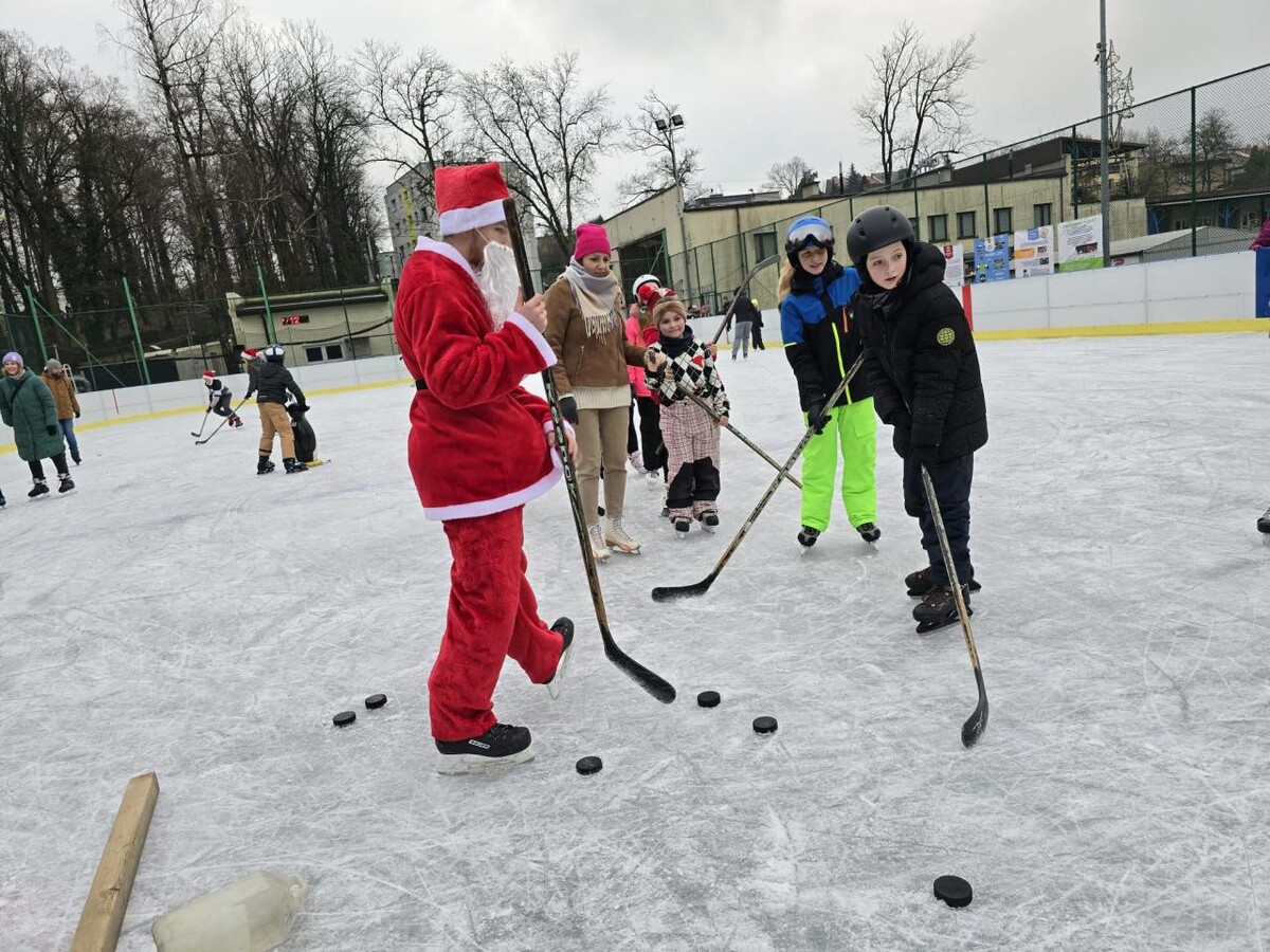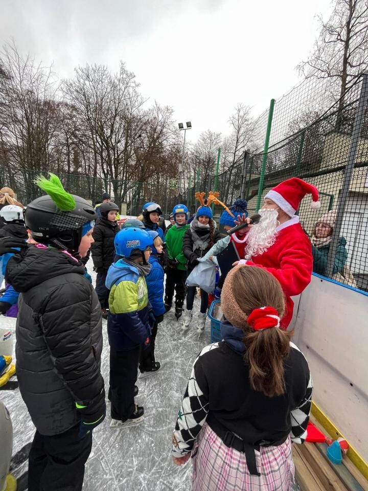 Na lodowisku OR "Planty" dzieci brały udział w zabawach i konkursach z Mikołajem i jego reniferami, zdobywając nagrody i słodkie upominki.