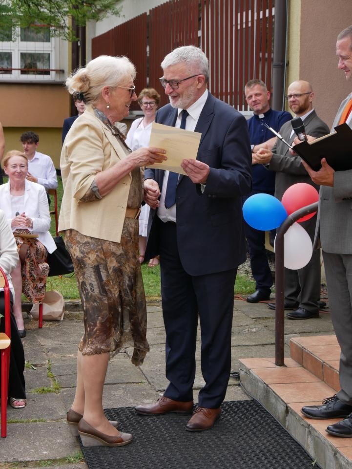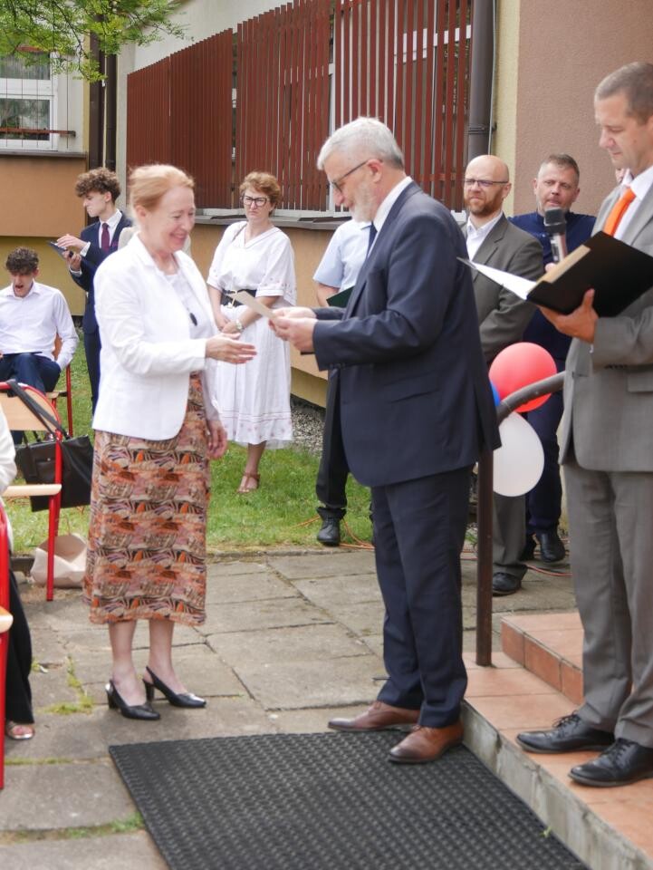 Wśród pożegnanych znalazła się Róża Włodarz, wicedyrektor szkoły z 35-letnim stażem, oraz Józef Wajsman. W imieniu władz Powiatu Mikołowskiego serdeczne życzenia i podziękowania złożyły Grażyna Nazar, członkini Zarządu Powiatu Mikołowskiego, oraz Iwona Smorz, naczelnik Wydziału Edukacji, Kultury i Sportu Starostwa Powiatowego w Mikołowie.