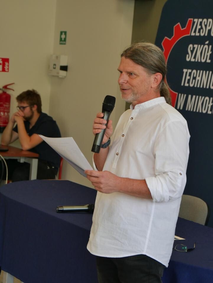 Dyrektor Marek Olsza podziękował nauczycielom ZST za zaangażowanie i pracę dydaktyczną w mijającym roku szkolnym. Szczególne słowa uznania i kwiaty skierowano do nauczycieli kończących pracę w szkole, w tym przechodzących na emeryturę.