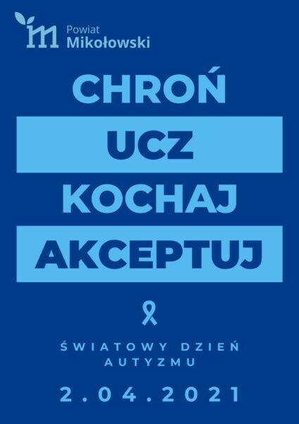 Przeddzień przypadającego na 2 kwietnia Światowego Dnia Świadomości Autyzmu Starostwo Powiatowe wspólnie z Poradnią Psychologiczno – Pedagogiczną w Mikołowie rozpoczęło akcję informacyjno- edukacyjną pod hasłem „Chroń, ucz, kochaj, akceptuj”.