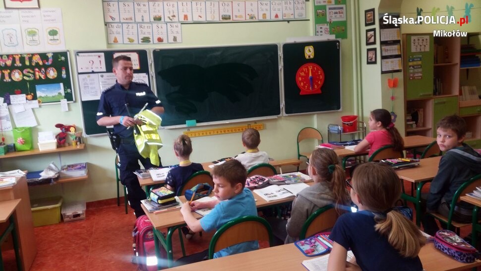 Mundurowy odwiedził również uczniów Szkoły Podstawowej nr 7 w Mikołowie- Mokrem. Uczniowie klas trzecich z wielkim zainteresowaniem wysłuchali prelekcji mundurowego na temat wielu aspektów szeroko rozumianego pojęcia bezpieczeństwa. Dzielnicowy przekazał im wiele wskazówek, pomogących uchronić się przed różnymi niebezpiecznymi dla nich sytuacjami.