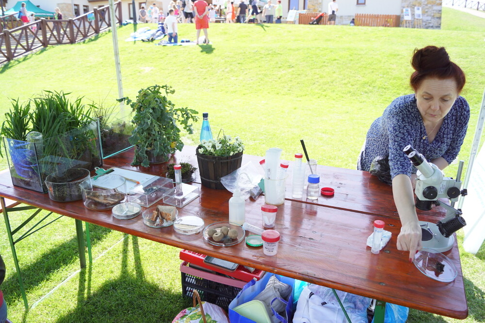 W dziale Warsztatowo dzieciaki mogły przekonać się, czy podczas zabawy można chronić Ziemię. Na stanowisku Państwowej Inspekcji Ochrony Roślin i Nasiennictwa można było przekonać się, co w ziemi piszczy. Edukatorzy z Ośrodka Hodowli Żubrów z Nadleśnictwa Kobiór przybliżyli wszystkim zainteresowanym te piękne zwierzęta. W południe odbyły się również warsztaty w Zielarium.