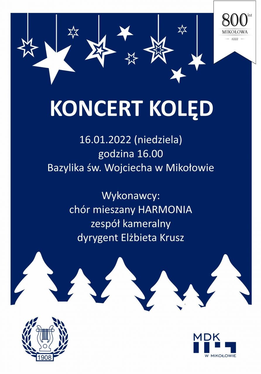 W niedzielę 16 stycznia o godz. 16.00 Miejski Dom Kultury w Mikołowie zaprasza do bazyliki św. Wojciecha na koncert kolęd w wykonaniu chóru mieszanego Harmonia pod dyrekcją Elżbiety Krusz.