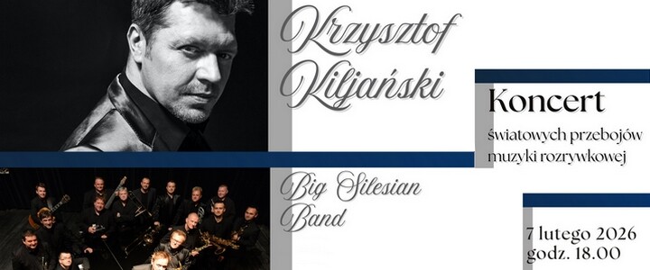 7 lutego 2026 roku, o godzinie 18:00, w Miejskim Domu Kultury w Mikołowie odbędzie się wyjątkowy koncert Krzysztofa Kiljańskiego, któremu towarzyszyć będzie Big Silesian Band pod dyrekcją Joachima Krzyka. Będzie to wieczór pełen światowych przebojów muzyki rozrywkowej, które na pewno na długo zapadną w pamięć publiczności.