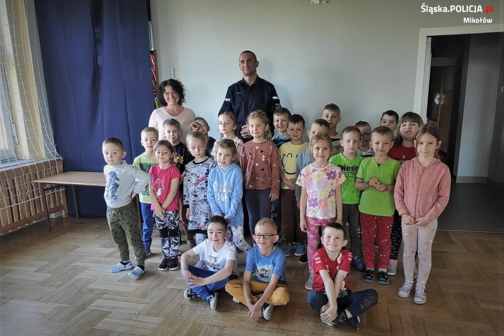 Policyjni profilaktycy z mikołowskiej jednostki odwiedzili wychowanków jednego z miejscowych przedszkoli. Dzieci z grup "Jeżyki i "Zajączki" poznały szczegóły dotyczące zawodu policjanta oraz kilka zasad w zakresie bezpiecznego przechodzenia przez jezdnię. Przedszkolaki miały za zadanie pomóc "Zebrze przejść przez pasy".