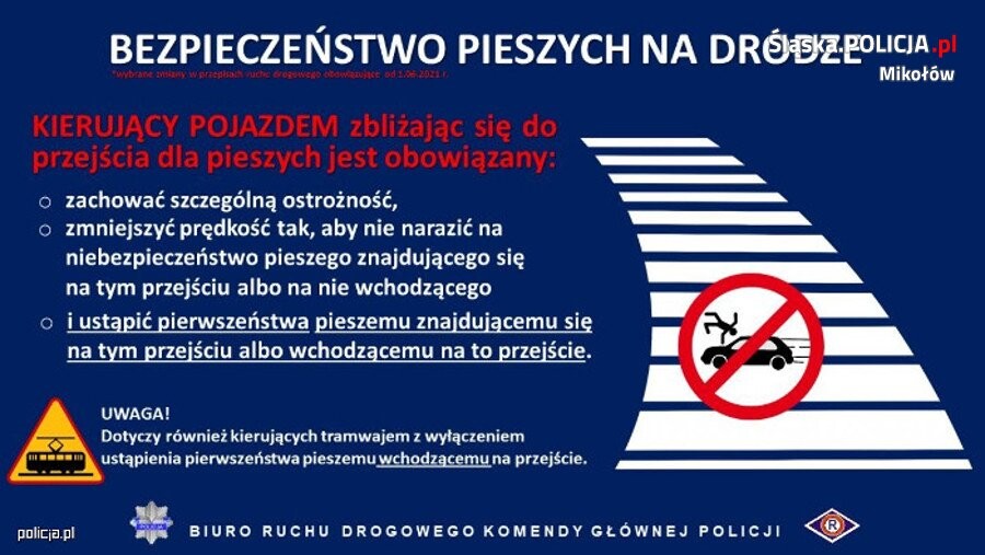 Dzisiaj, mikołowska drogówka prowadzi działania „Bezpieczny pieszy”. Mają one na celu zwiększenie bezpieczeństwa pieszych oraz uświadomienie kierującym samochodami, że piesi również są pełnoprawnymi uczestnikami ruchu drogowego. Nadzorem objęte zostaną miejsca, które są szczególnie niebezpieczne dla pieszych np. przejścia przez ruchliwe jezdnie lub przejścia, na których doszło do potrąceń pieszych. Jednocześnie prowadzone są przedsięwzięcia edukacyjne, w ramach których policjanci przekazują uczestnikom ruchu drogowego informacje o zagrożeniach pieszych na drodze oraz potrzebie pogłębienia znajomości i przestrzegania przepisów prawa. Mundurowi zwracają szczególną uwagę na korzystanie przez pieszych z przejść oraz sposób poruszania się na odcinkach dróg bez wydzielonych chodników.