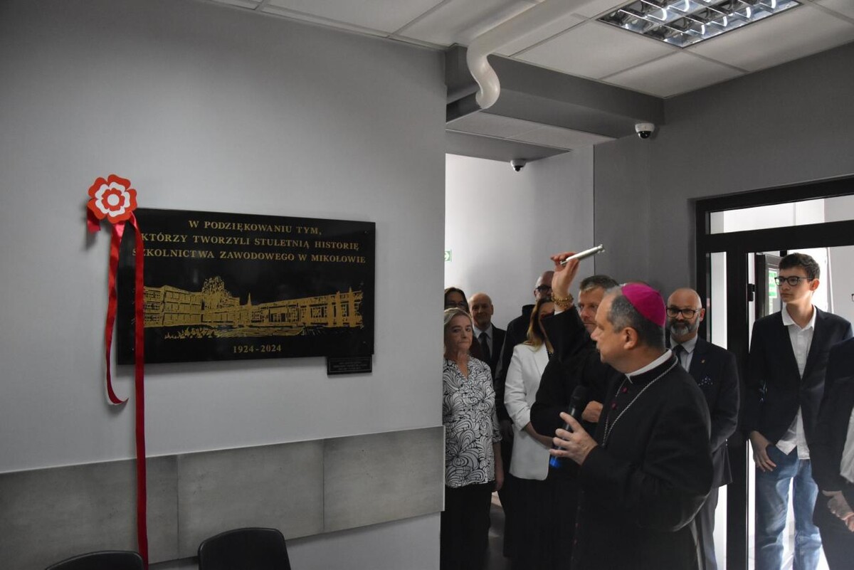 Po zakończeniu nabożeństwa w holu Zespołu Szkół Technicznych (ZST) odsłonięto pamiątkową tablicę ufundowaną przez absolwenta szkoły. Odsłonięcia dokonała Grażyna Nazar, członkini Zarządu Powiatu, a poświęcenia tablicy dokonał biskup Grzegorz Olszowski, również absolwent tej placówki.
