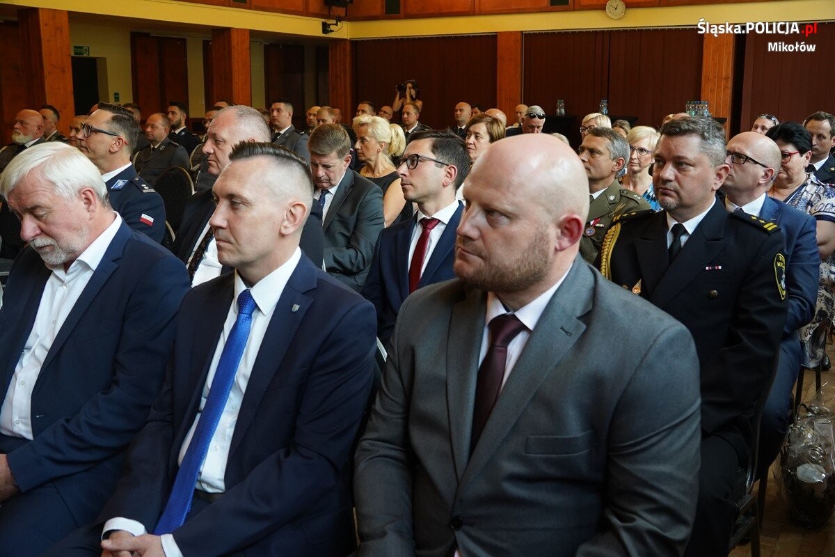 W wypełnionej po brzegi sali widowiskowej znaleźli się zaproszeni goście, wśród których był, między innymi, konsul honorowy Republiki Austrii Mirosław Bienioszek, Starosta Mikołowski Mirosław Duży wraz z Przewodniczącym Rady Powiatu Grzegorzem Conrad, Naczelnik Zarządzania Kryzysowego Starostwa Powiatowego Bartłomiej Depta, Drugi Zastępca Burmistrza Mikołowa Aneta Esnekier, Burmistrz Łazisk Górnych Aleksander Wyra, Zastępca Burmistrza Orzesza Tomasz Szier, Wójt Ornontowic Marcin Kotyczka, gospodarz imprezy Wójt Gminy Wyry Joanna Pasierbek-Konieczny, Prokurator Rejonowy w Mikołowie Tomasz Rygiel. Ponadto, w uroczystości uczestniczyli przedstawiciele służb mundurowych: Państwowej Straży Pożarnej w Mikołowie, Wojskowego Centrum Rekrutacji, Straży Miejskiej, Ochotniczych Straży Pożarnych, przewodniczący Rad Miejskich i Gminnych z terenu powiatu mikołowskiego oraz przedstawiciele lokalnych szpitali, kopalń, elektrowni i instytucji samorządowych. Nie mogło zabraknąć także osób, które reprezentują związki zawodowe policyjne i pracowników cywilnych, jak również policyjnych emerytów.