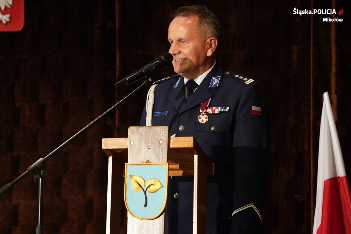 W pierwszej kolejności głos zabrał Komendant Powiatowy Policji w Mikołowie inspektor Krzysztof Czaja, który przywitał zebranych gości. Szef mikołowskich stróżów prawa nawiązał do działań formacji i współpracy z różnymi instytucjami w minionych kilkunastu miesiącach. W swoim wystąpieniu zwrócił uwagę na specyficzny i nie raz bardzo trudny charakter codziennej służby w poszczególnych pionach jednostek z Mikołowa, Orzesza i Łazisk Górnych. Podkreślił, iż mikołowscy mundurowi są kontynuatorami ponad stuletnich tradycji przedwojennej śląskiej Policji, utożsamiając się z ideałami ówczesnej formacji, to jest etosem służby, honorem, dbałością o dobre imię służby i godność munduru. Dodatkowo w tym roku obchodzone jest 25 lecie powstania Komendy Powiatowej Policji w Mikołowie, co czyni tę uroczystość bardziej wyjątkową. Najważniejszym zaś celem jest służba społeczeństwu. Podsumowując swoje wystąpienie, komendant podziękował wszystkim funkcjonariuszom i pracownikom cywilnym, za służbę, dyspozycyjność i wysokie zaangażowanie.
