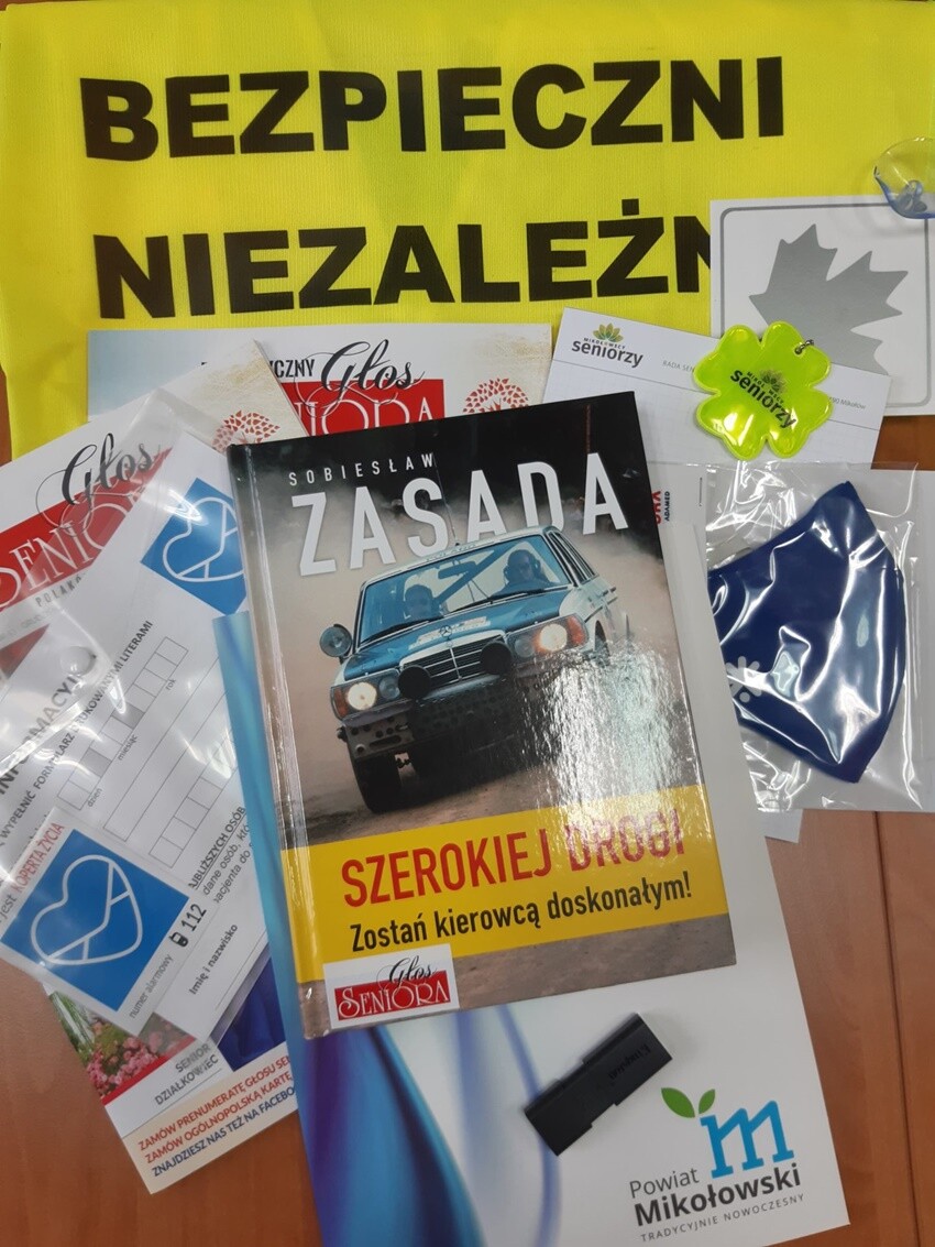 – Z racji zagrożenia COVID-19 zrezygnowaliśmy z badania poziomu cukru we krwi i diagnostyki samochodu. Nie było spotkań w grupach z psychologiem, policjantem i ratownikiem medycznym jednak wykłady te zostały przygotowane w formie filmów i w wersji drukowanej, nagrane na pendrivy i przekazane uczestnikom projektu. Tak więc otrzymali oni film plus materiały drukowane dotyczące aktualnych przepisów ruchu drogowego, porady psychologów na temat wpływu wieku i schorzeń związanych z wiekiem na umiejętności jazdy samochodem, film instruktażowy dotyczący udzielania pierwszej pomocy przedmedycznej oraz zasad bezpieczeństwa związanych z COVID-19. Dodatkowo wyposażeni zostali w odblaski, kamizelki odblaskowe, srebrne listki oraz poradniki książkowe dotyczące bezpiecznej jazdy samochodem (Sobiesław Zasada "Szerokiej drogi. Zostań kierowcą doskonałym"), maseczki , notesy, koperty życia oraz czasopisma Głosu Seniora – wymienia Sabina Grzywok. -Wszystkie materiały zostały dostarczone bezpośrednio do uczestników projektu.