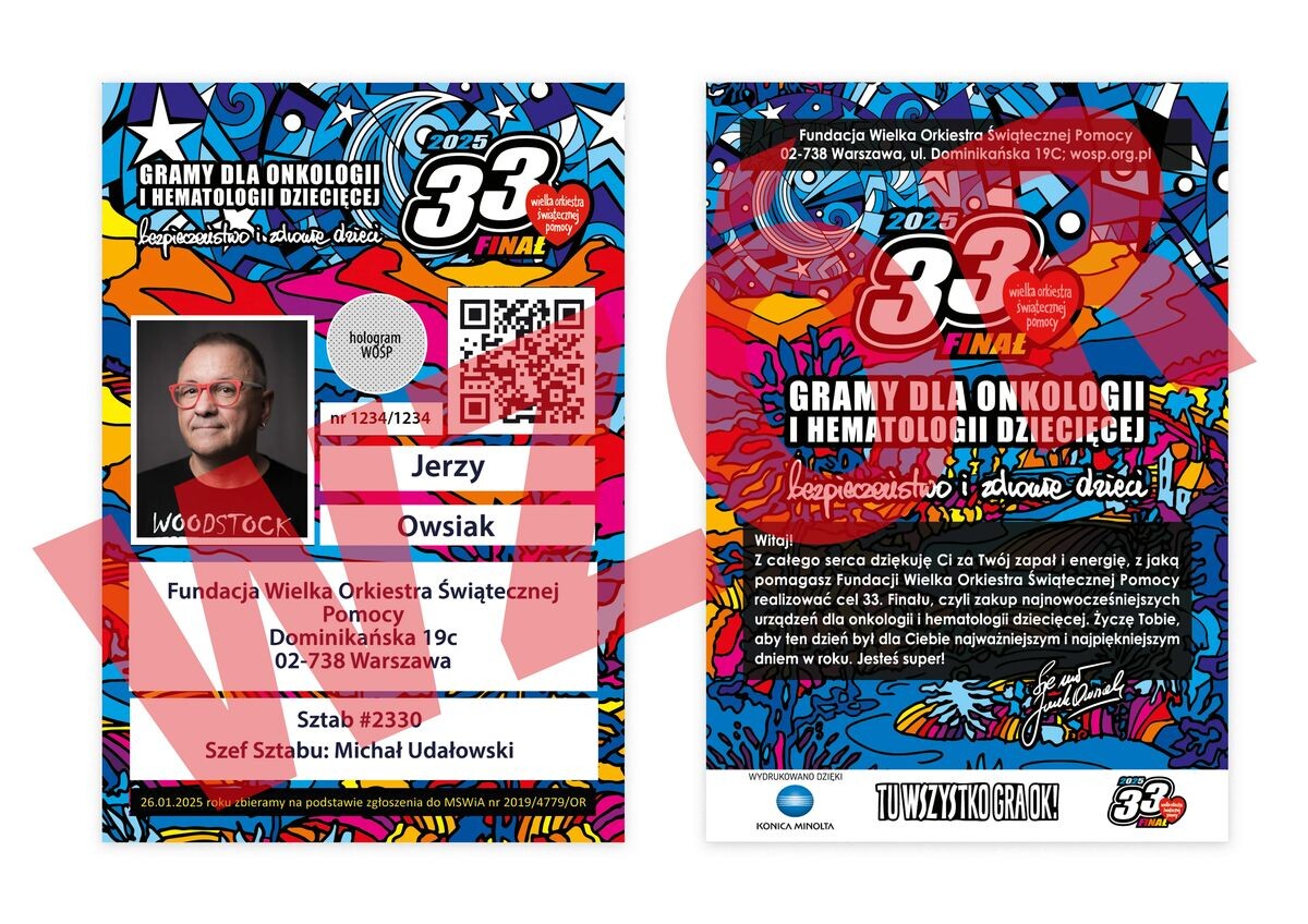 - Hologram, pieczątkę Fundacji, numer zbiórki i dane Sztabu,