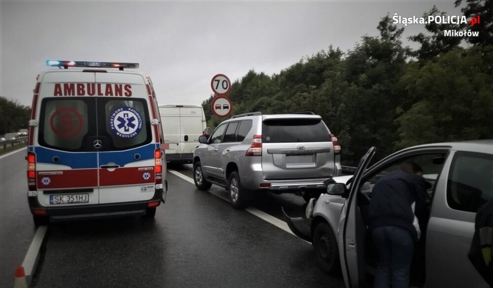 - 1 września, godzina 14:30: Mikołów, DK 44 w kierunku Tychów: kierująca samochodem toyota 19-latka nie dostosowała prędkości do warunków ruchu, w wyniku czego najechała na tył poprzedzającego ją auta, który siłą odrzutu uderzył z kolei w poprzedzający go samochód renault. Kolizja spowodowała utrudnienia na jednym z pasów ruchu. Za spowodowanie zagrożenia w ruchu drogowym kobieta została ukarana mandatem karnym w wysokości 250 zł.