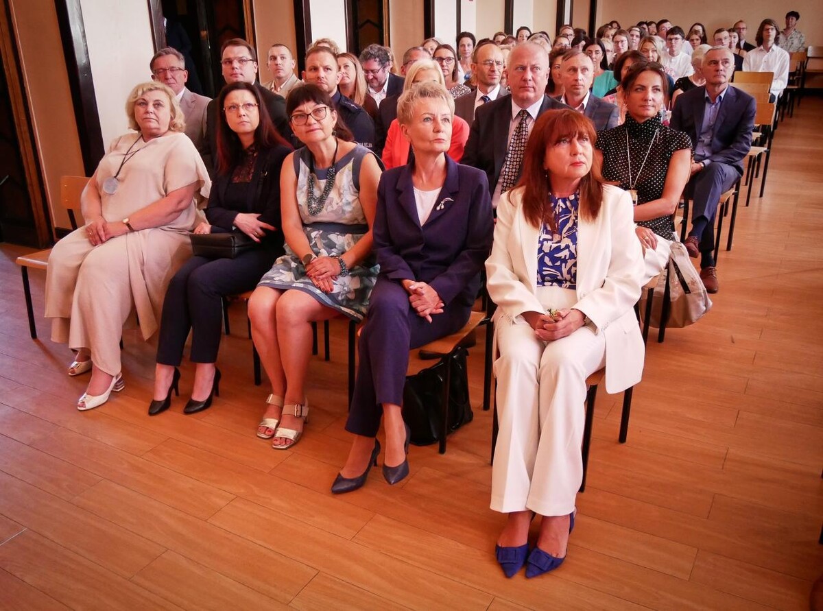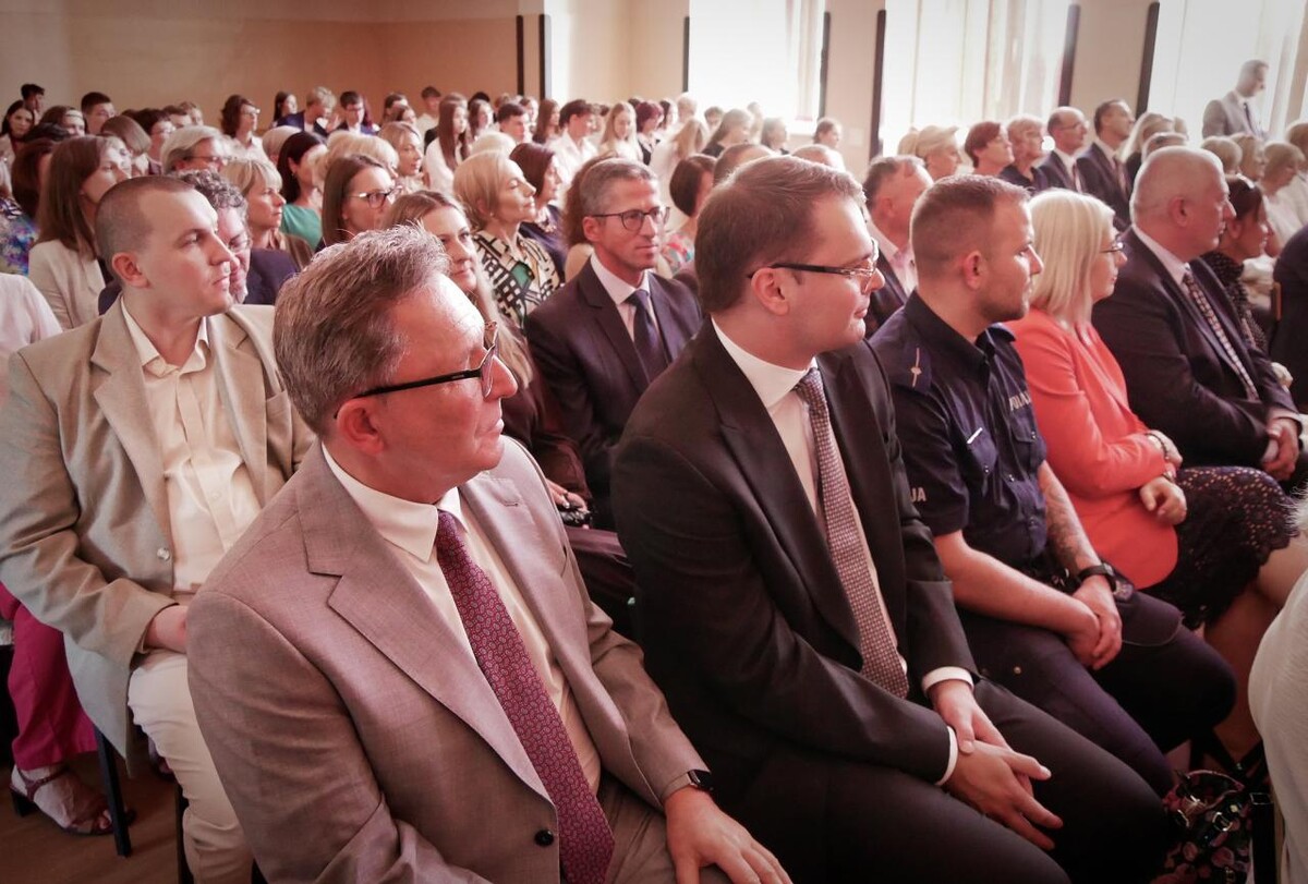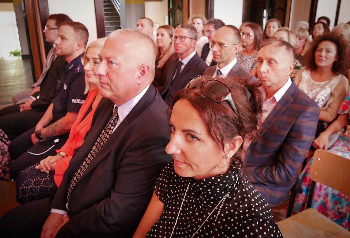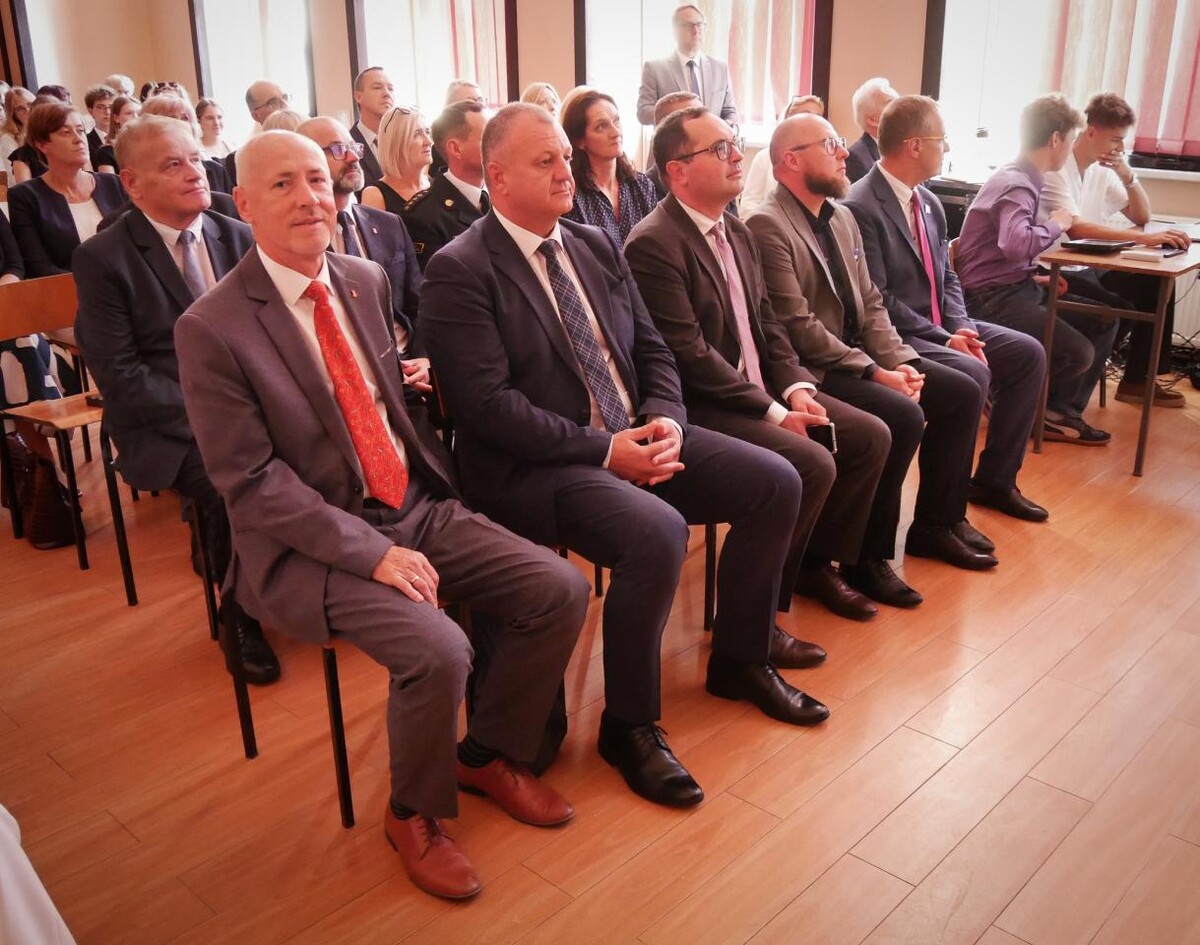 Na uroczystość przybyli również przedstawiciele policji, straży pożarnej, kuratorium, związków zawodowych, dyrektorzy szkół prowadzonych przez powiat, pracownicy starostwa, delegaci rad rodziców oraz nauczyciele.