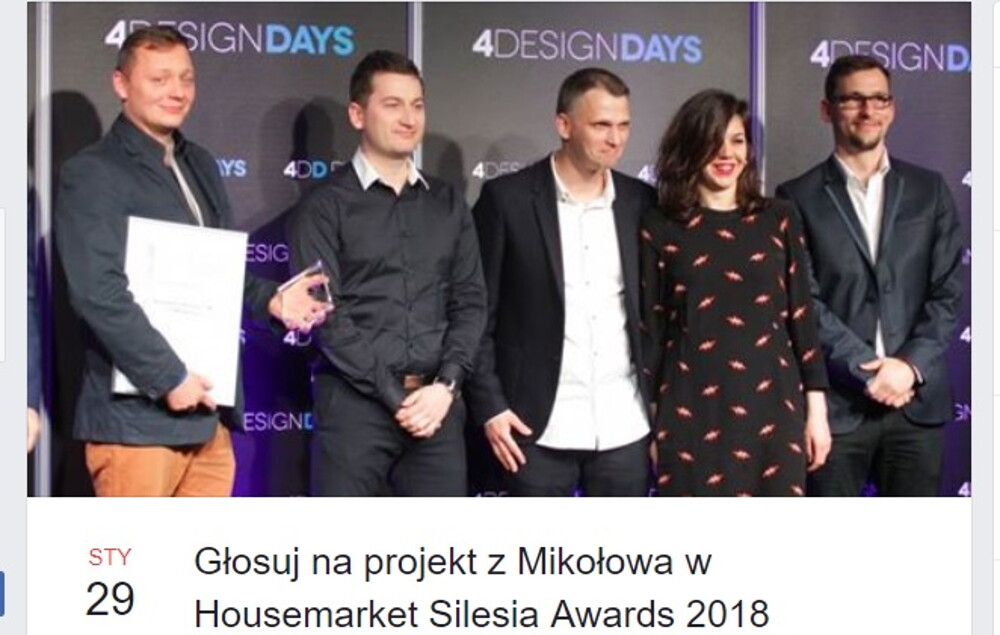 Internauci wyjątkowo docenili nowoczesne projekty urbanistyczne w Mikołowie. W prestiżowych Housemarket Silesia Awards 2018 mamy jeden projekt nominowany w dwóch kategoriach. Pomóżmy mu w wygranej!