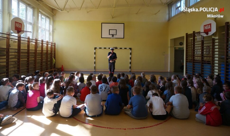 Policjant mikołowskiej drogówki odwiedził dzisiaj uczniów klas IV jednej z miejscowych podstawówek. Spotkanie miało na celu przypomnienie młodym ludziom, którzy w najbliższym czasie przystępować będą do egzaminu na kartę rowerową, podstawowych zasad bezpieczeństwa w ruchu drogowym.