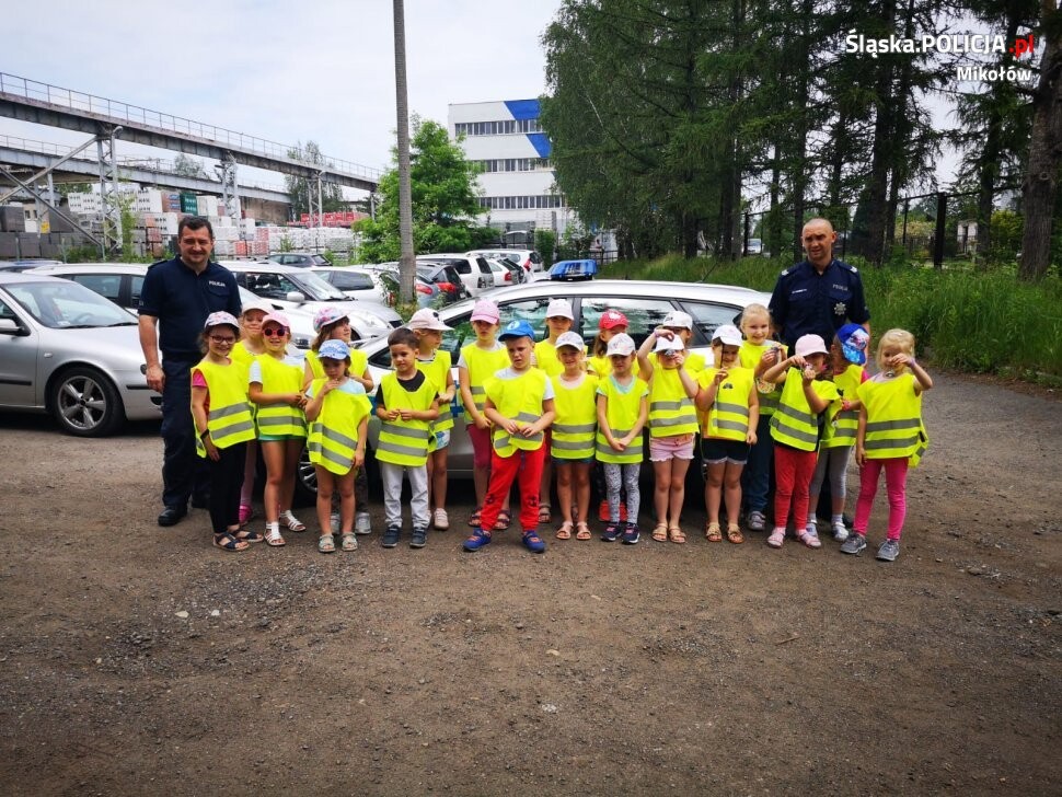 Swoją wycieczkę rozpoczęły od zwiedzania budynku komendy. Mikołowski profilaktyk, sierż. szt. Artur Ceran pokazał dzieciom najciekawsze miejsca w komendzie. Milusińscy na dłużej zagościli w pomieszczeniach technika kryminalistyki, który pokazał im sprzęt wykorzystywany na miejscu zdarzenia oraz zademonstrował jak pobiera się odciski linii papilarnych. Dalsza część spotkania odbyła się w auli komendy, gdzie sierż. szt. Artur Ceran wraz z policjantem ruchu drogowego st. sierż Adamem Jakubczykiem zaprezentowali sprzęt wykorzystywany w służbie przez mikołowskich policjantów. Następnie mundurowi przypomnieli najmłodszym o najważniejszych zasadach bezpieczeństwa w ruchu drogowym oraz podczas zabaw w kontekście zbliżających się wakacji, realizaując założenia akcji informacyjno- edukacyjnej "Kręci mnie bezpieczeństwo nad wodą". Następnie pod koniec wycieczki, uczniowie zagościli w gabinecie Pierwszego Zastępcy Komendanta Powiatowego Policji w Mikołowie nadkom. Dariusza Waligóry, który na pamiątkę w trosce o bezpieczeństwo dzieci, rozdał im odblaskowe radiowozy.