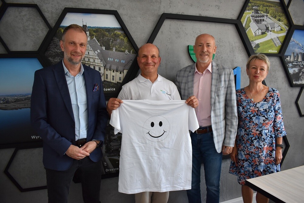 Tomasz Pawłowski, znany samorządowcom jako "Tomek Wędrowniczek", po raz kolejny odwiedził Powiat Mikołowski. W dniu dzisiejszym spotkał się ze starostą Mirosławem Dużym, członkinią Zarządu Powiatu Grażyną Nazar oraz sekretarzem Łukaszem Rygułą.